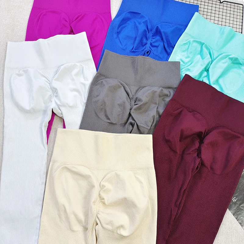 - > Leggings de ioga com nervuras de outono de inverno – elevador de pêssego espesso de cintura alta, calças de treino respiráveis de estiramento de 4 vias