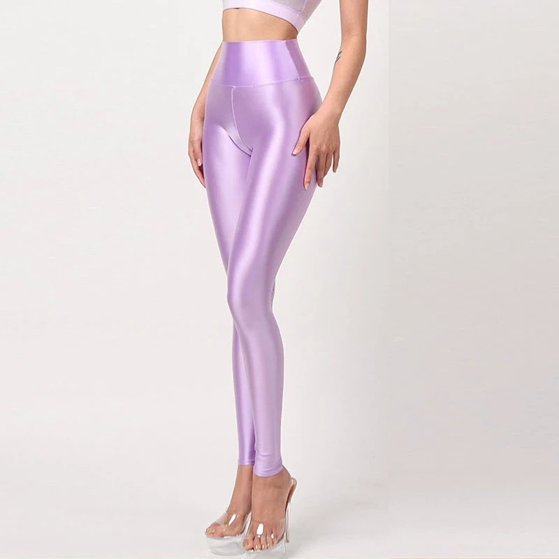 Leggings Esportivos De Cintura Alta Para Mulheres, Calças De Yoga Sexy, Calças Cargo De Cetim Quente, Seda Apertada, Calças Brilhantes, Plus Size