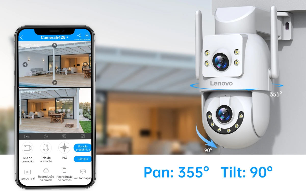 Devido ao horizontal 330° e o vertical 90°, você pode controlar remotamente a câmera externa wi-fi para visualizar todos os cantos através do seu celular.