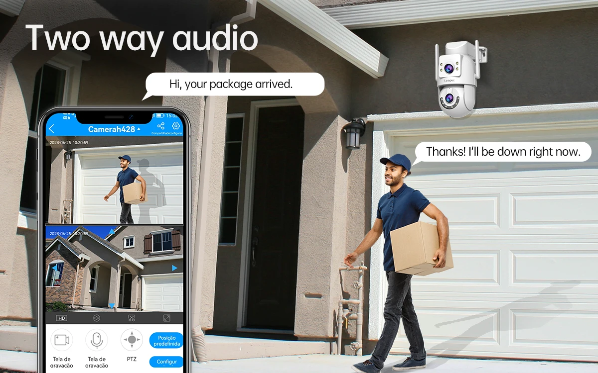 ● Áudio Bidirecional: Fale e Ouça em Tempo Real