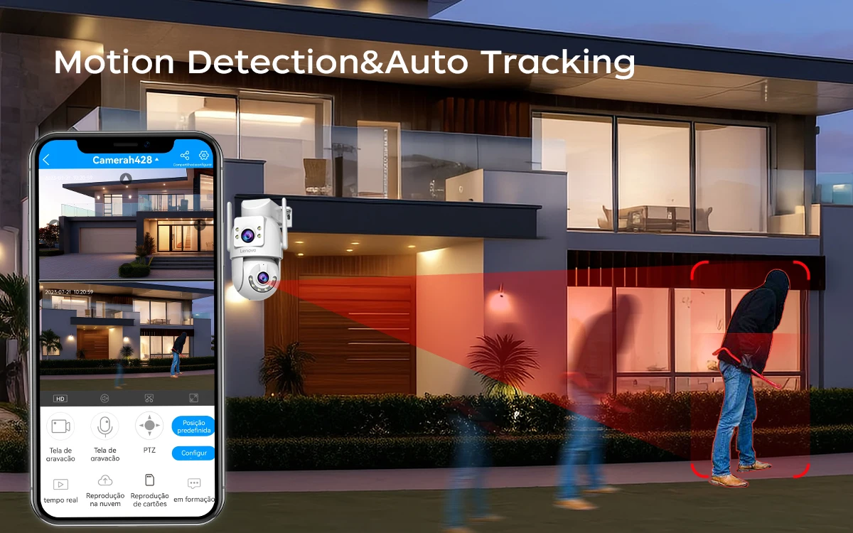 Quando a câmera detecta um objeto em movimento, ela enviará informações de alerta em tempo real para o seu aplicativo móvel e salvará as evidências por meio de instantâneos/vídeo do APP.