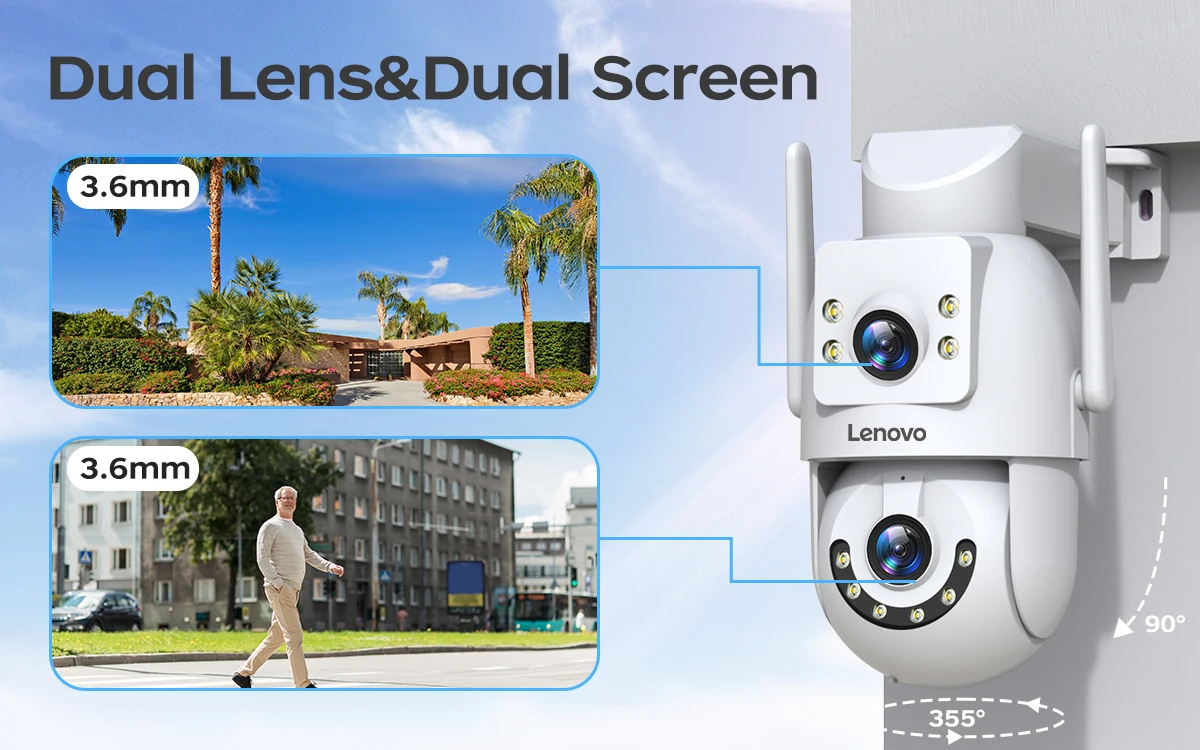 Lenovo 4k 6mp wifi câmera de vigilância segurança ao ar livre lente dupla tela ai rastreamento câmera ip ptz cctv vigilância vídeo