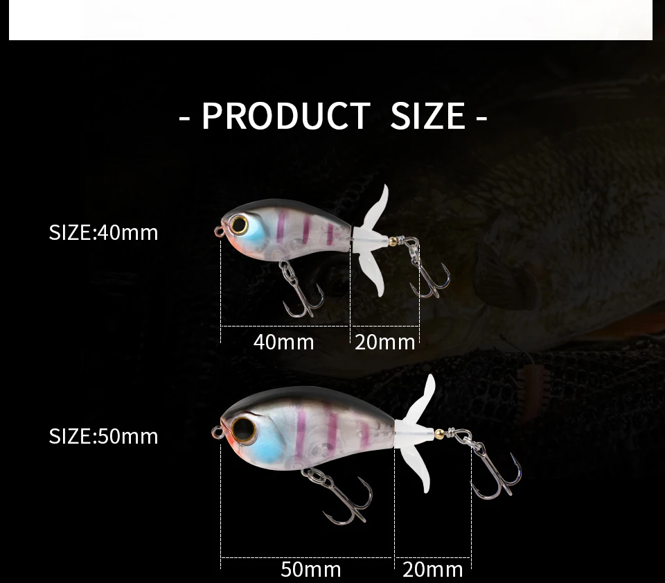 Letoyo 40mm 50mm topwater whopper popper rotativa hélice dupla cauda isca artificial para baixo pique iscas de pesca