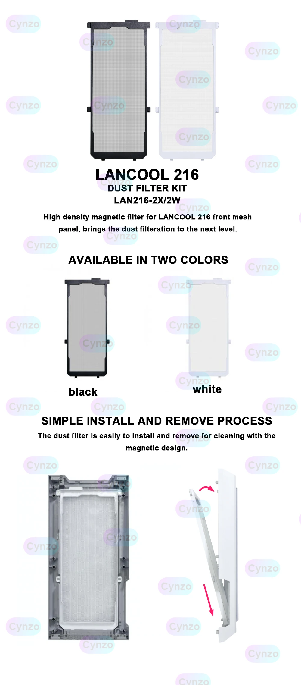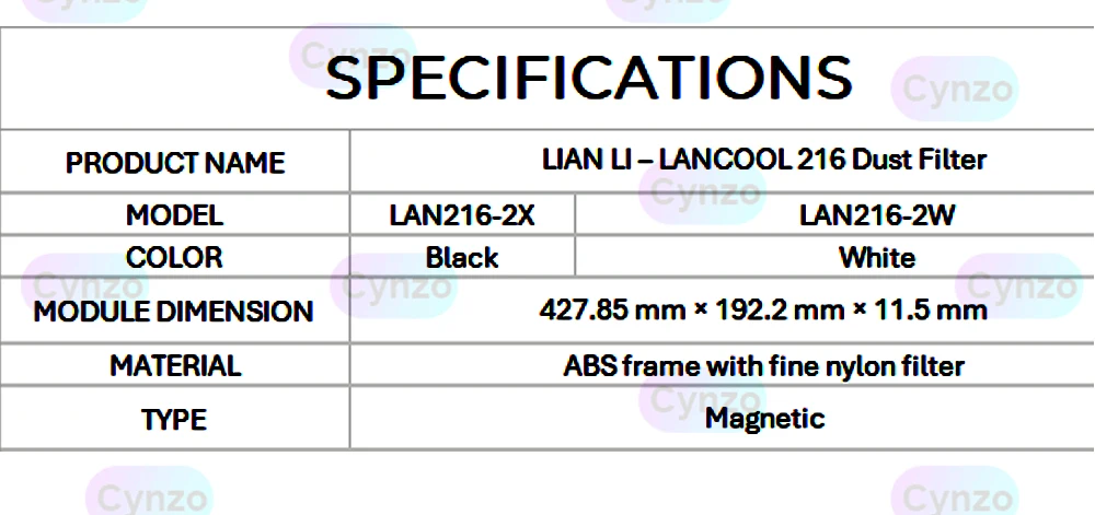 LIAN LI Filtro Magnético de Alta Densidade para LANCOOL 216 Painel de Malha Frontal do Chassi, Rede de Poeira de PC Preto e Branco LAN216-2X/2W