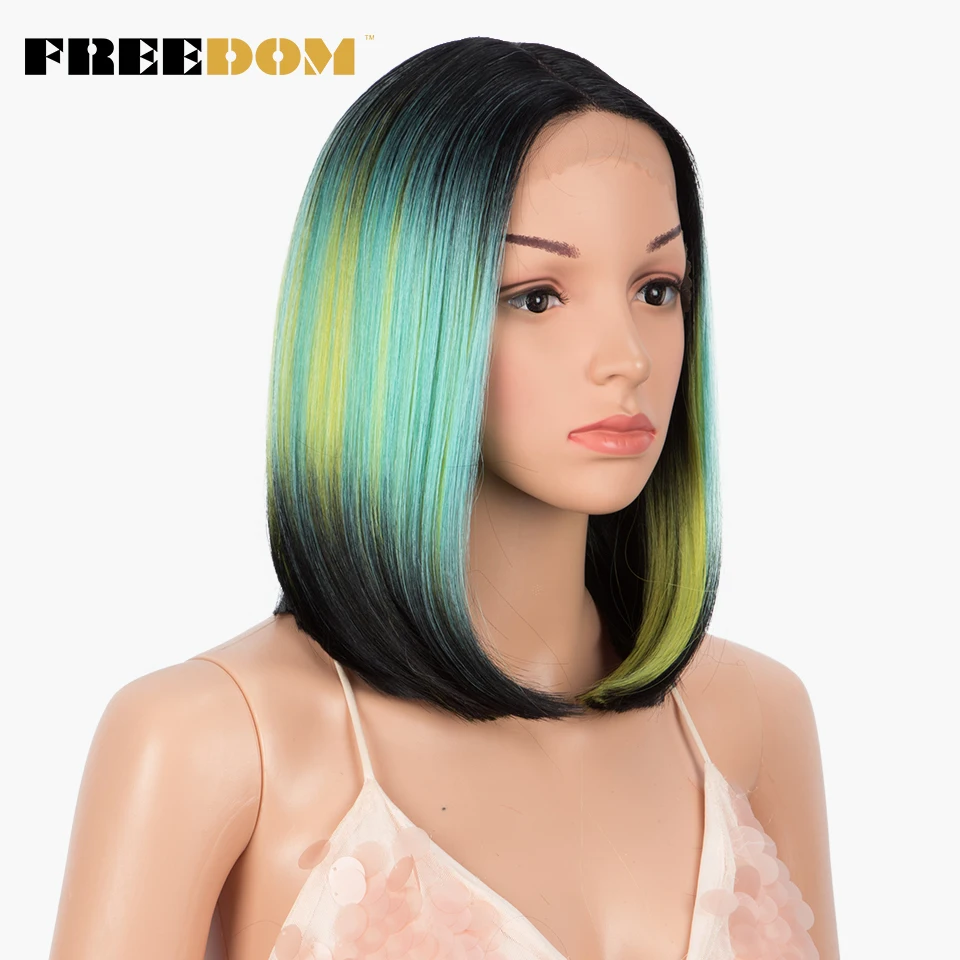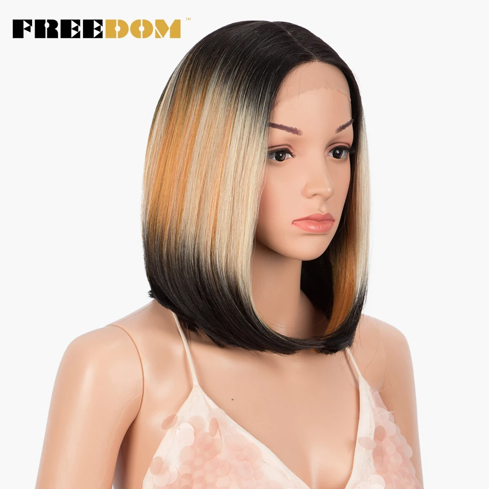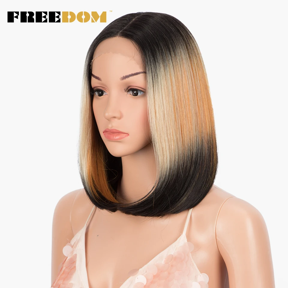 - > Liberdade perucas de renda sintética em linha reta curto bob ombre loira azul peruca de renda parte média perucas de renda para preto feminino perucas cosplay
