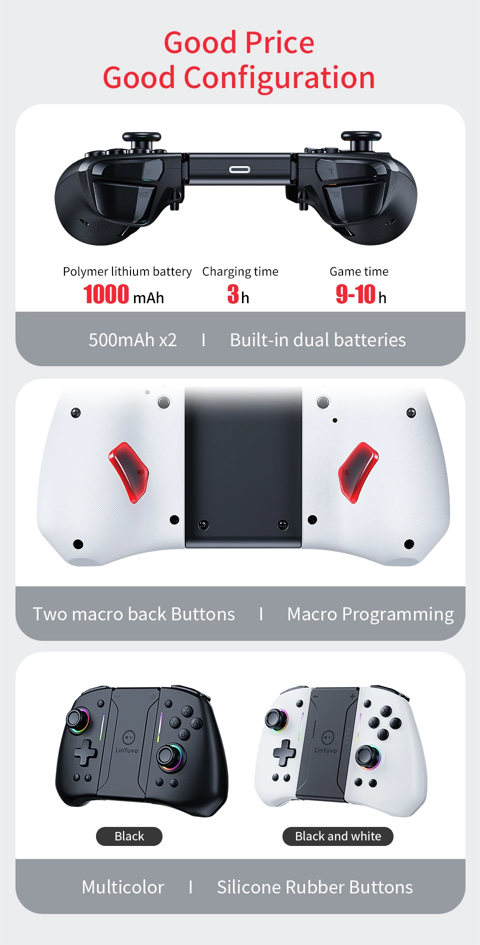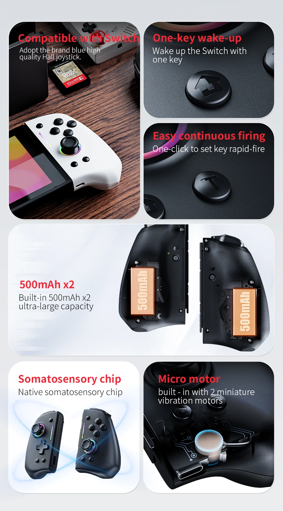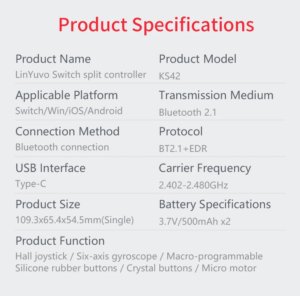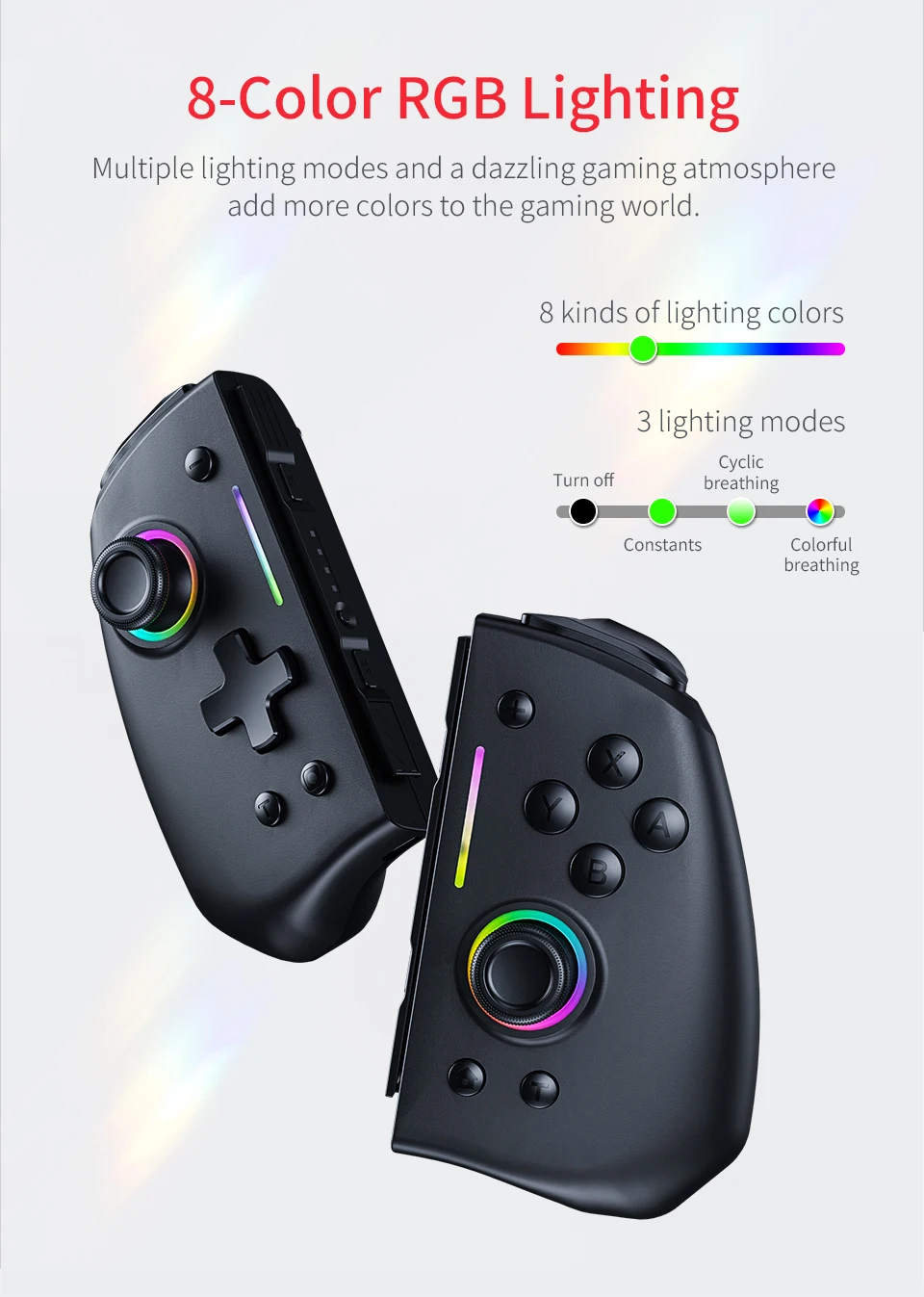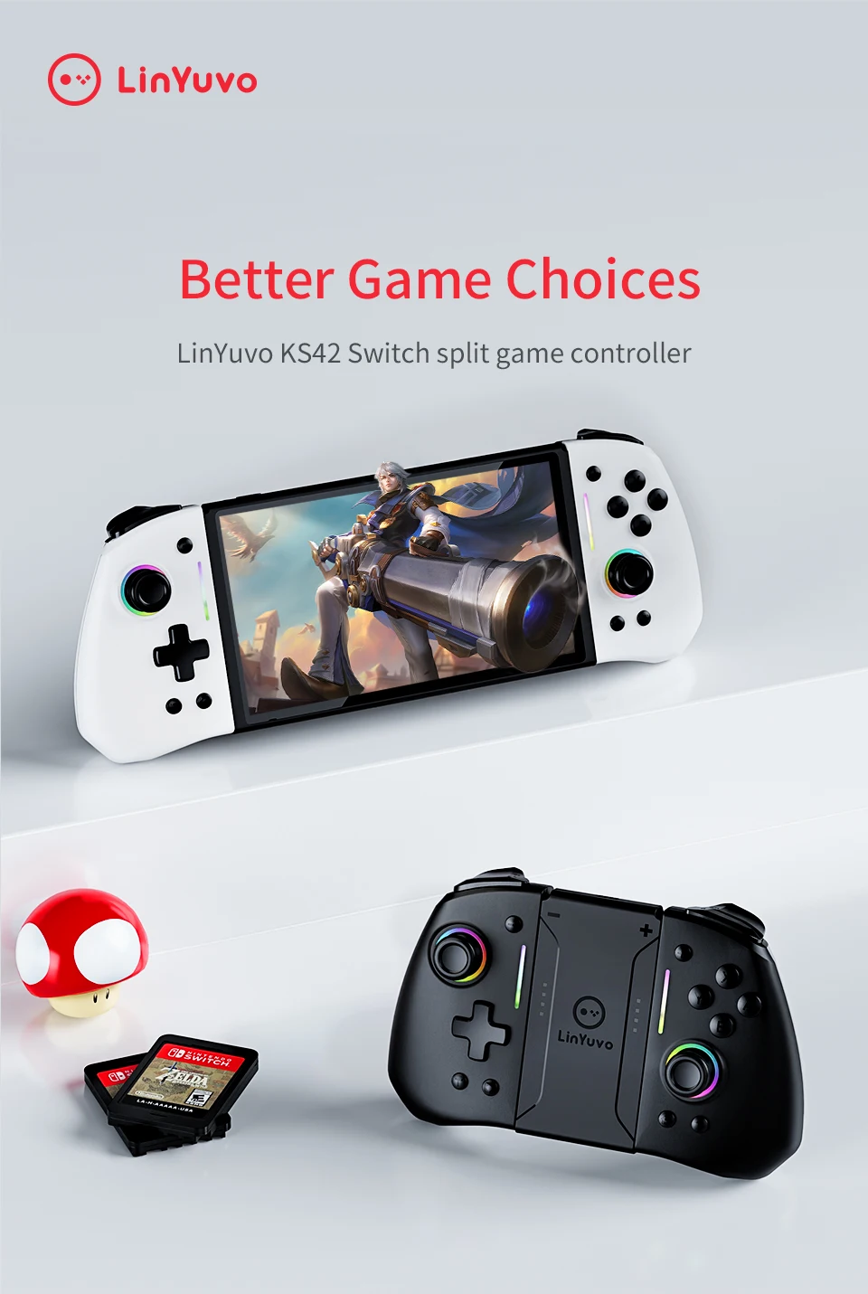 - > Linyuvo ks42 joycon para nintendo switch com efeito hall joypad controlador sem fio de seis eixos compatível/macros/turbo/luz rgb