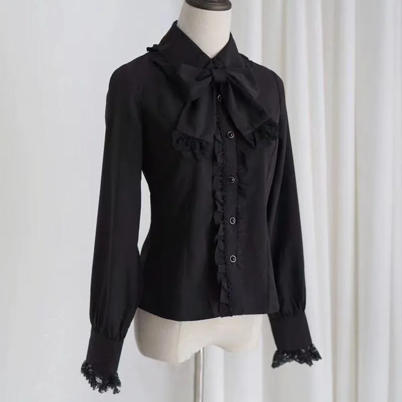Lolita estilo blusa branca roupas femininas peter pan colarinho manga longa arco doce camisas 2025 blusas mujer de moda bonito topos