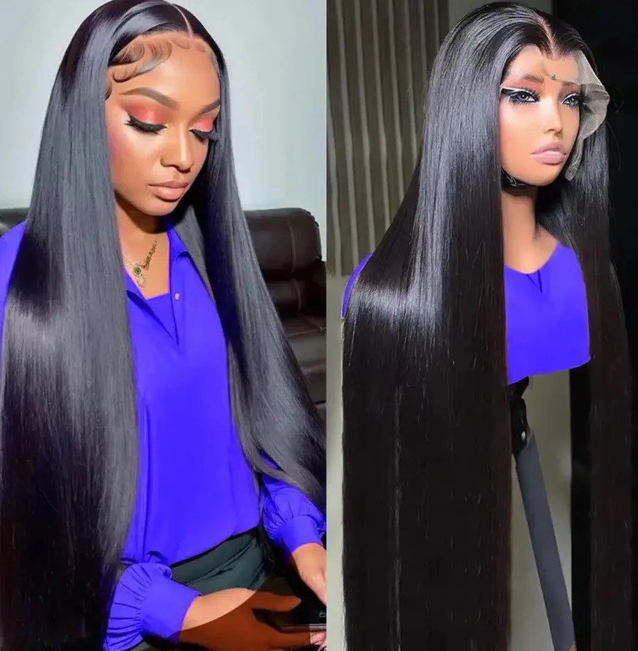 - > Longo cabelo macio em linha reta cor preta sintética 13x6 hd peruca frontal do laço para preto feminino prepucked com cabelo do bebê peruca sem cola