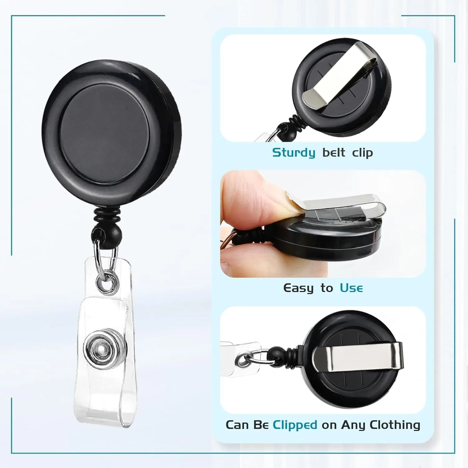 Material: Feitos de material ABS durável, esses porta-crachás retráteis são feitos para durar, oferecendo maior resistência e resiliência contra danos. O pacote inclui 5 peças de crachás retráteis, adequados para seu uso diário e reposição, bonitos e práticos. Clipe de cinto resistente: clipe de cinto na parte de trás do porta-crachá retrátil. O clipe do carretel pode ser facilmente preso a cintos, bolsos, golas e mochilas, ou aos seus cordões atuais, evitando que o carretel do crachá caia. Cabo retrátil liso: equipado com um número Cabo resistente ao calor Oh, nossos carrinhos são o crashá Estendem suavemente até 23,6 polegadas, facilitando a digitalização ã ou do cartõ Este é o desbloqueio por acesso em ambientes de escritório. Rio. Amplamente utilizados em vá Vários setores, nossos clipes de crachá retrá Eles estão participando de você. As necessidades de enfermagem, eu Senhoras, senhores, professores, alunos, funcionários escrevendo rios Rio são rios dispostos, oferecendo funcionalidade universal nas rotinas diárias de cena.