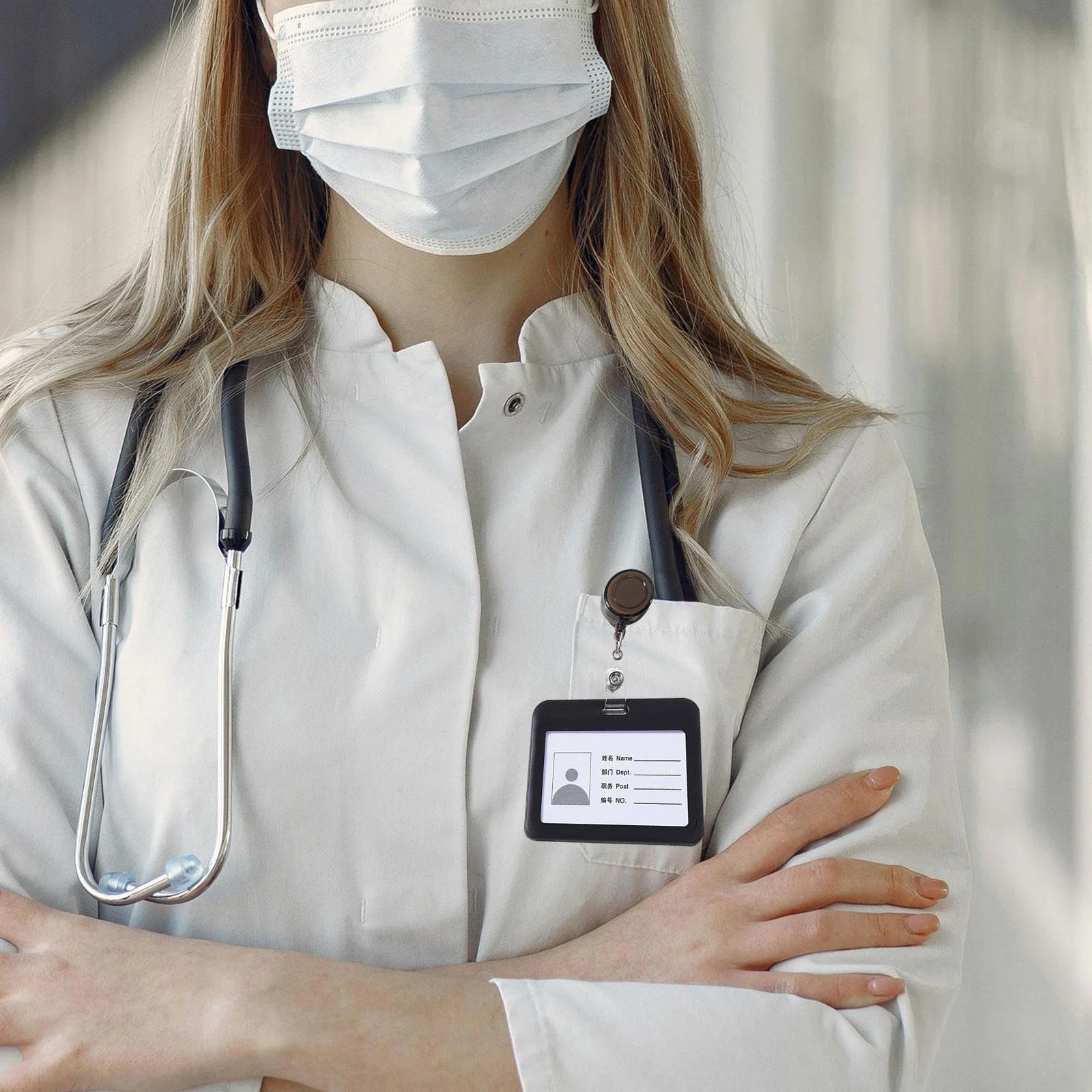 - > Lonimia Porta-crachá retrátil de 5 peças com clipe para cinto