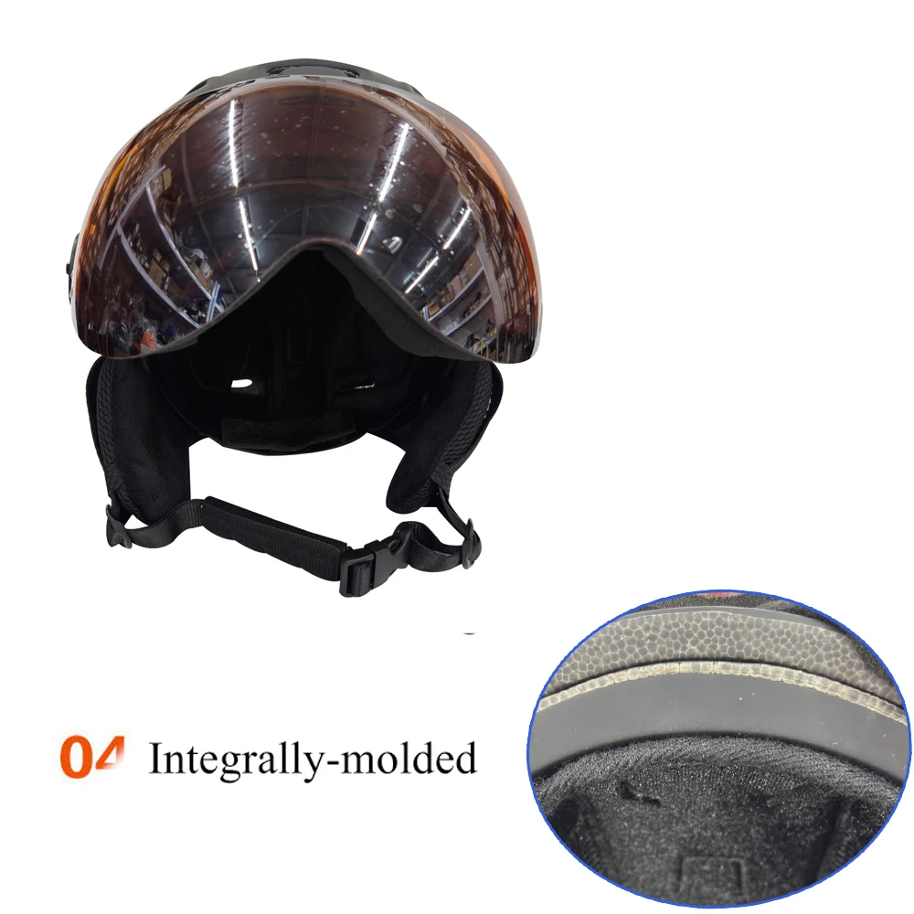3, 2 in 1 integrally-molded ski helmet with glasses set.