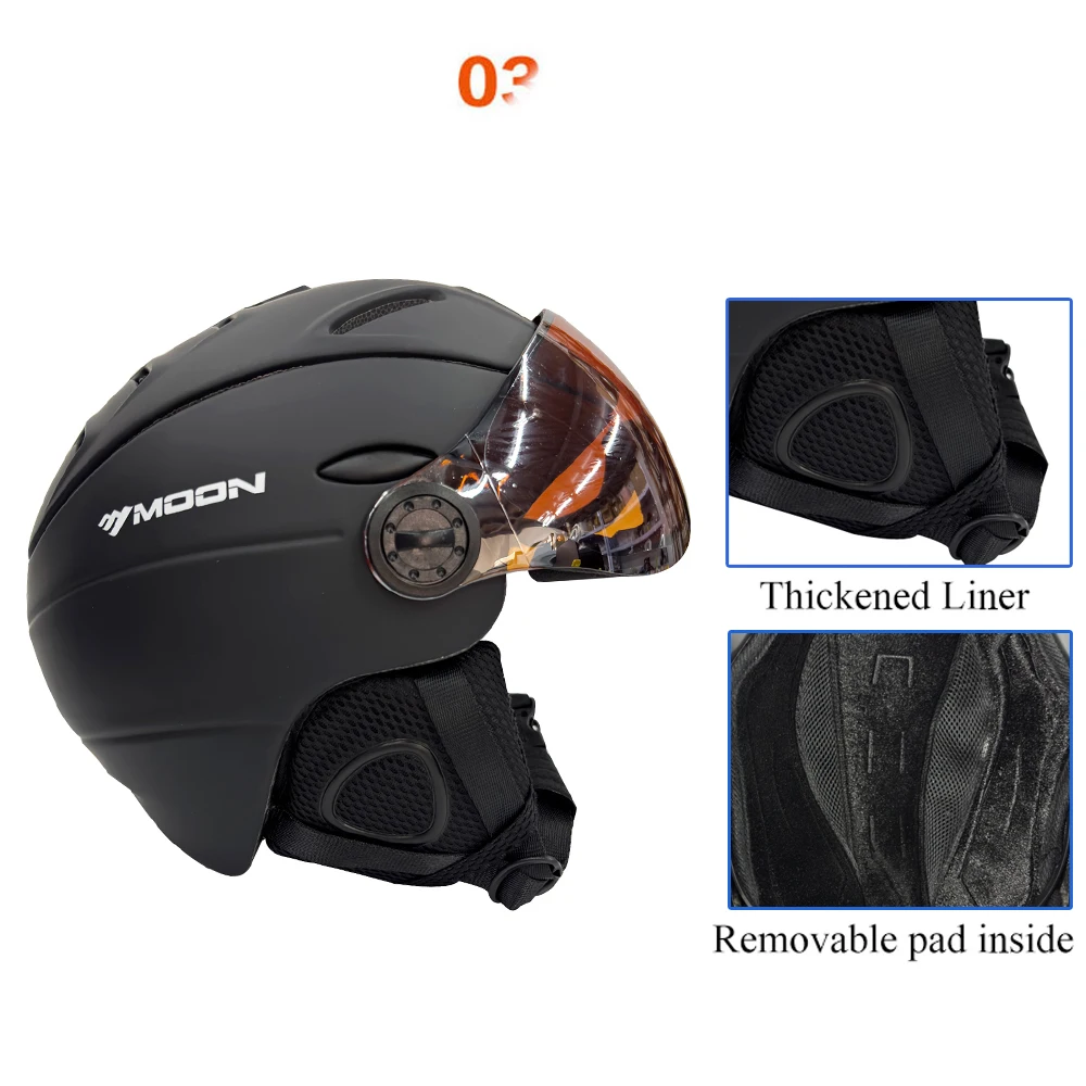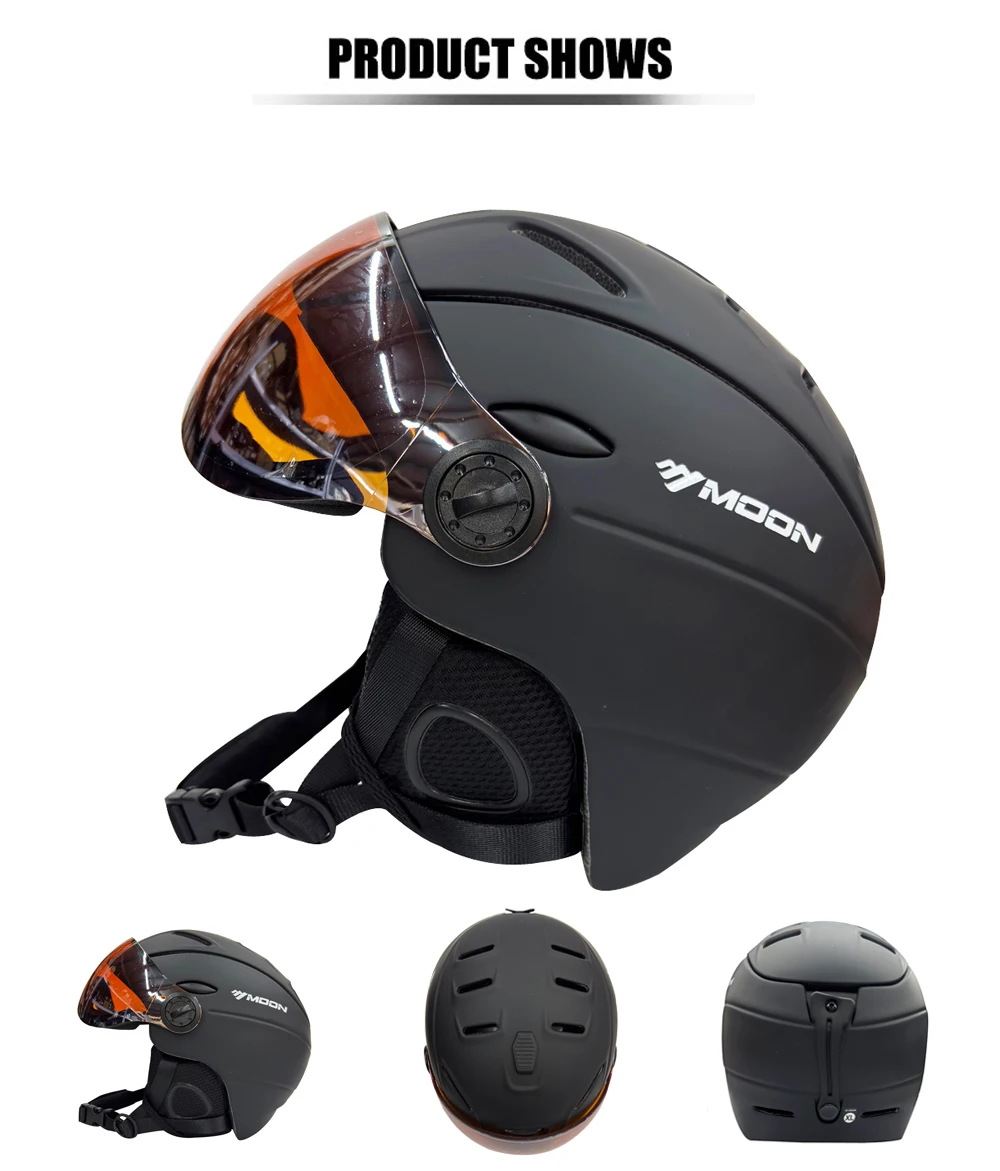 Moon Ski Helmet with glassess! They combine great ventilation system and ultra-comfort thanks to its premium material and technology. It’s stylish, fashion, lightweight, and has great shockproof performance.