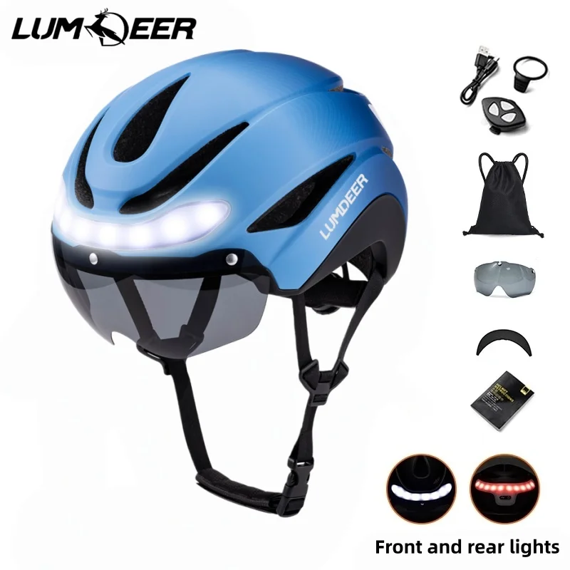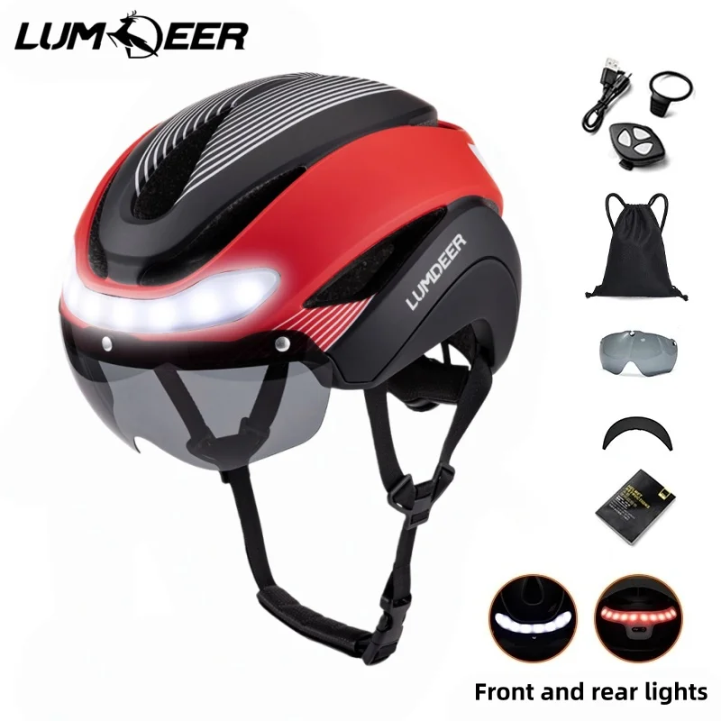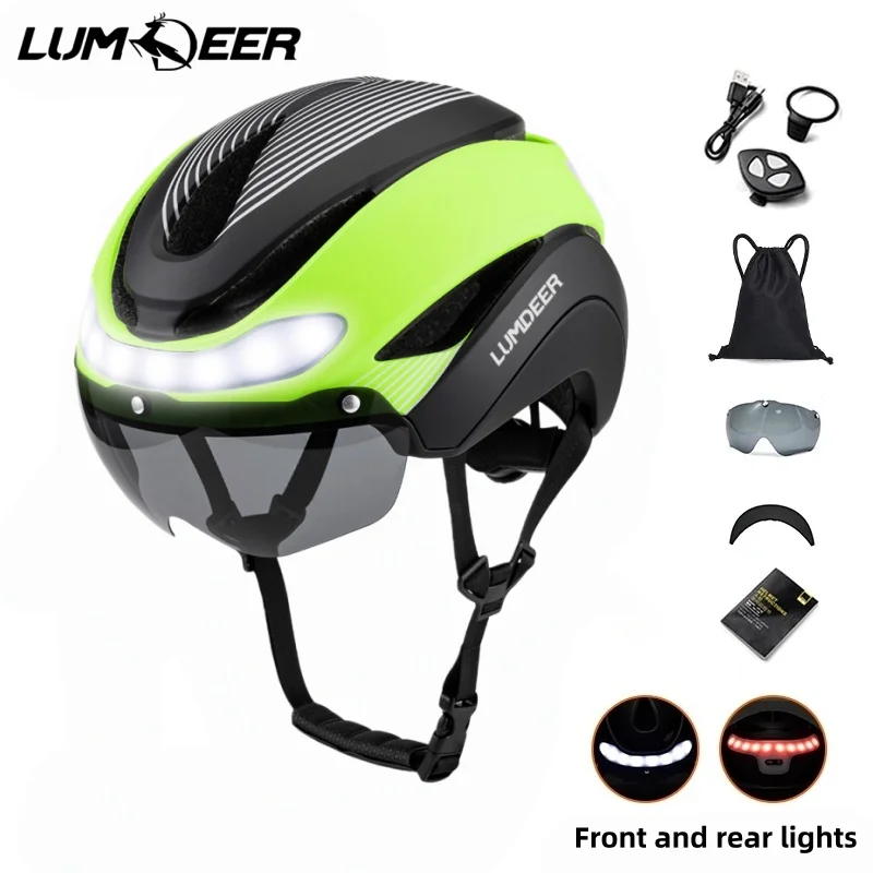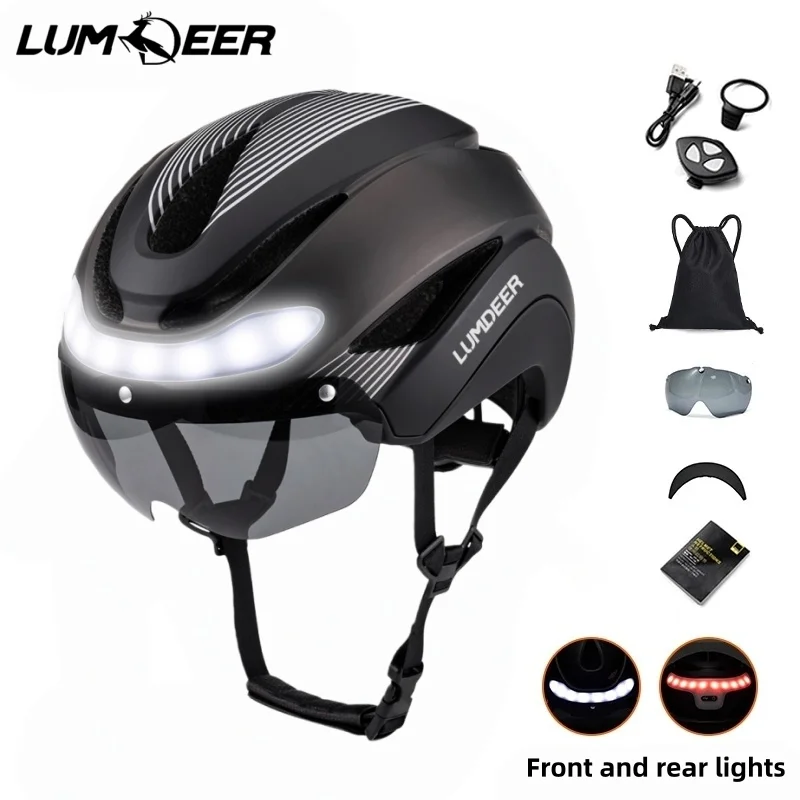 LUMDEER Capacete de sinal de seta para bicicleta de estrada com googles magnéticos e viseira solar para corrida ultraleve adulto dianteiro e traseiro