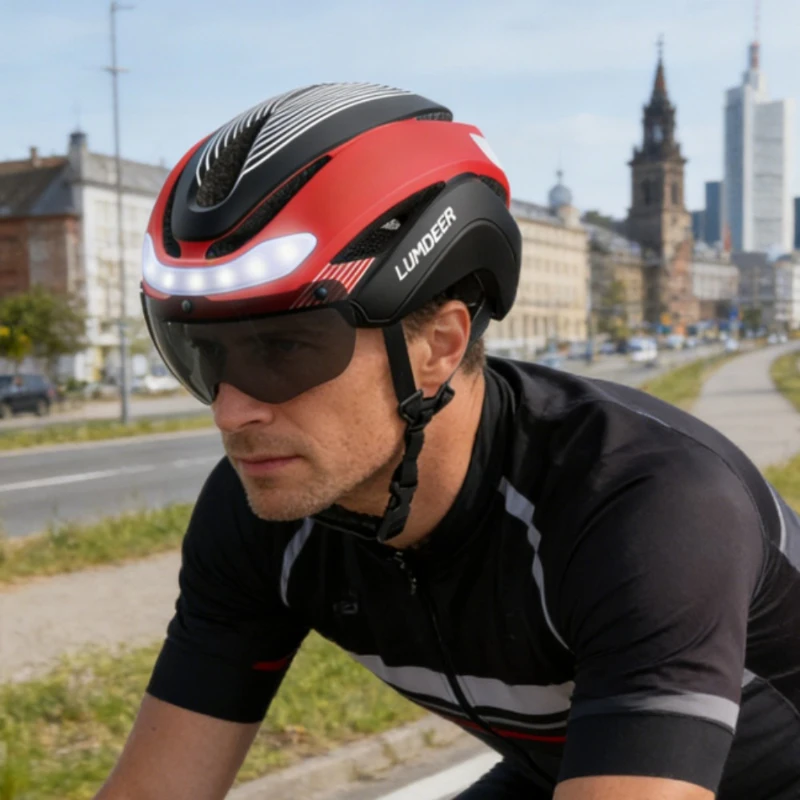 Capacete de Ciclismo LUMDEER para Estrada com Sinalizador de Direção, Óculos Magnéticos e Viseira Solar – Ultraleve para Corridas e Ciclismo de Estrada Adulto, com Luzes Dianteira e Traseira.