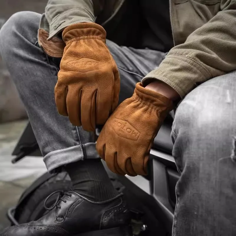 - > Luvas de motocicleta de couro fosco vintage para homens e mulheres, acessórios de condução, luva de trabalho quente, dirtbike mx, itens de motocross
