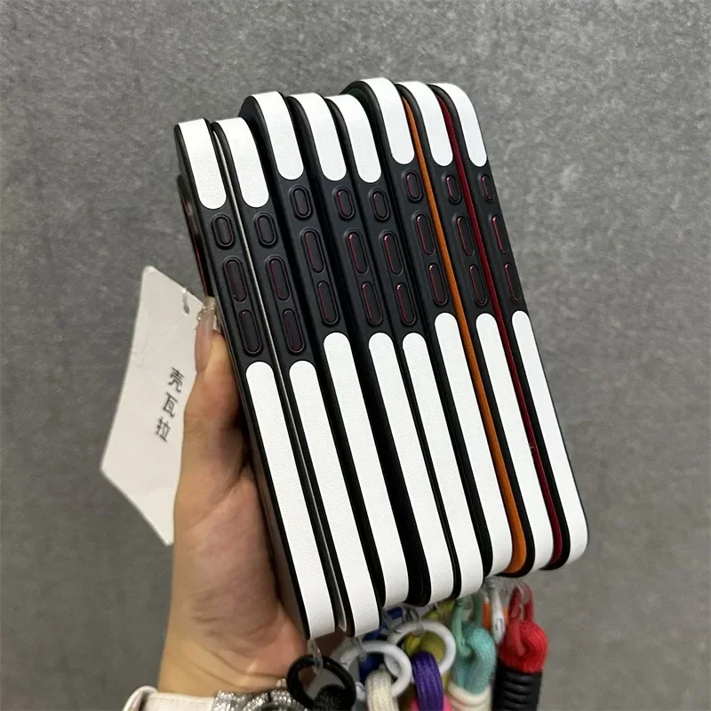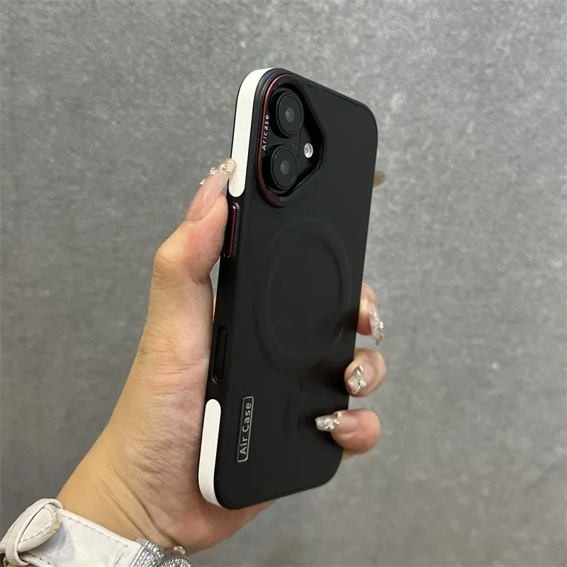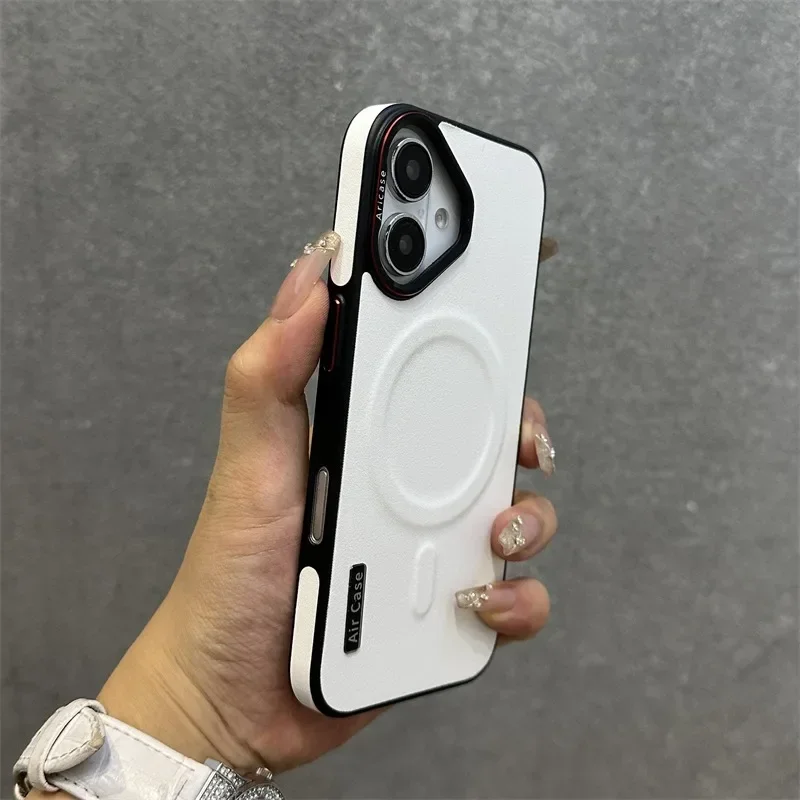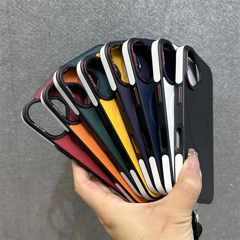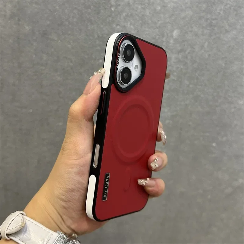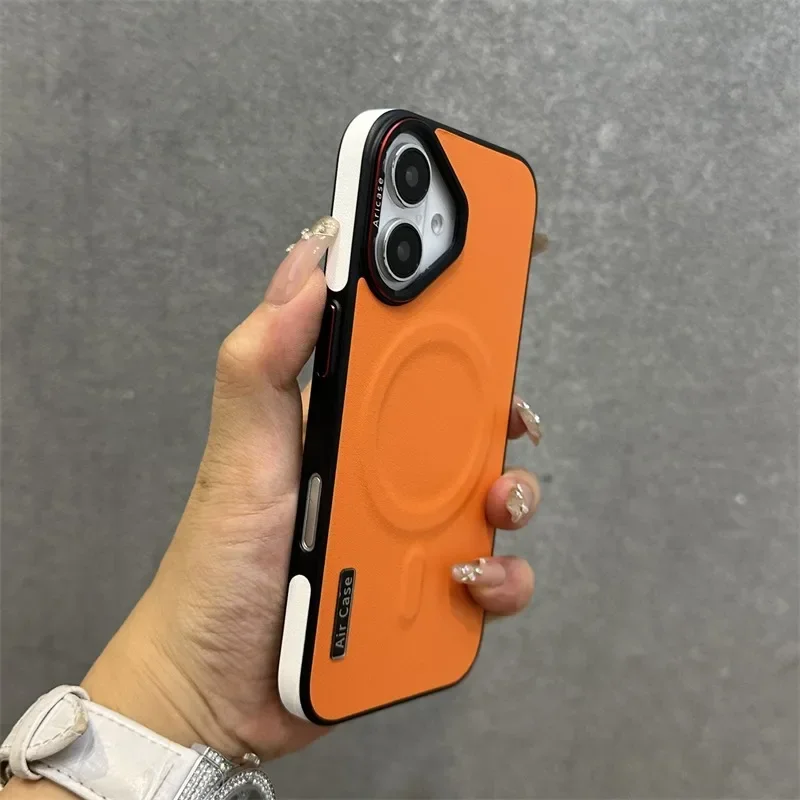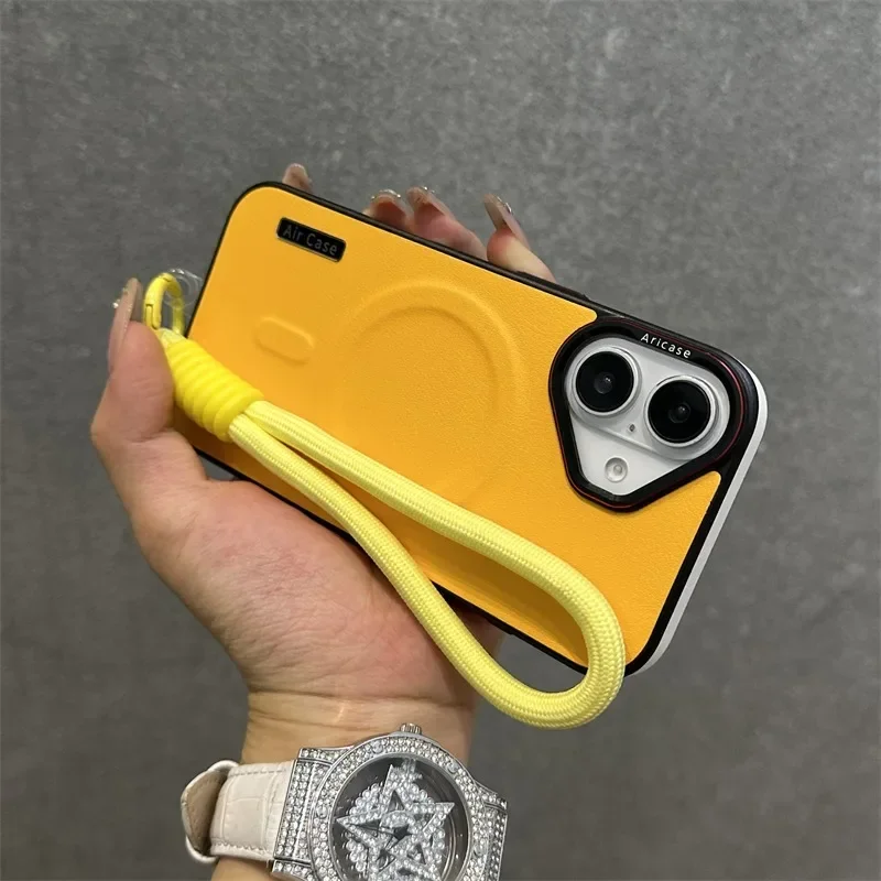 - > Luxo fosco couro magsafe caso para iphone 16 15 14 13 12 pro max carregador sem fio dupla cor pulseira de pulso capa macia