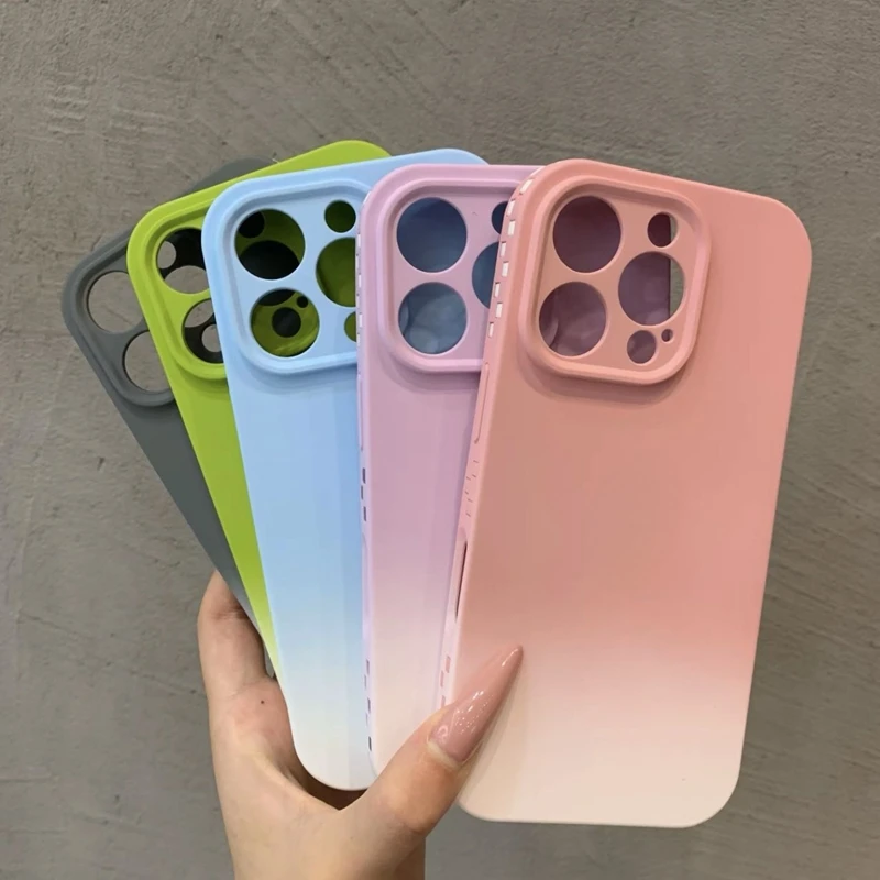 - > Luxo líquido silicone gradiente cor caso de telefone para iphone 13 14 15 16 17 pro max ar mais doce macio pára-choques casos capa