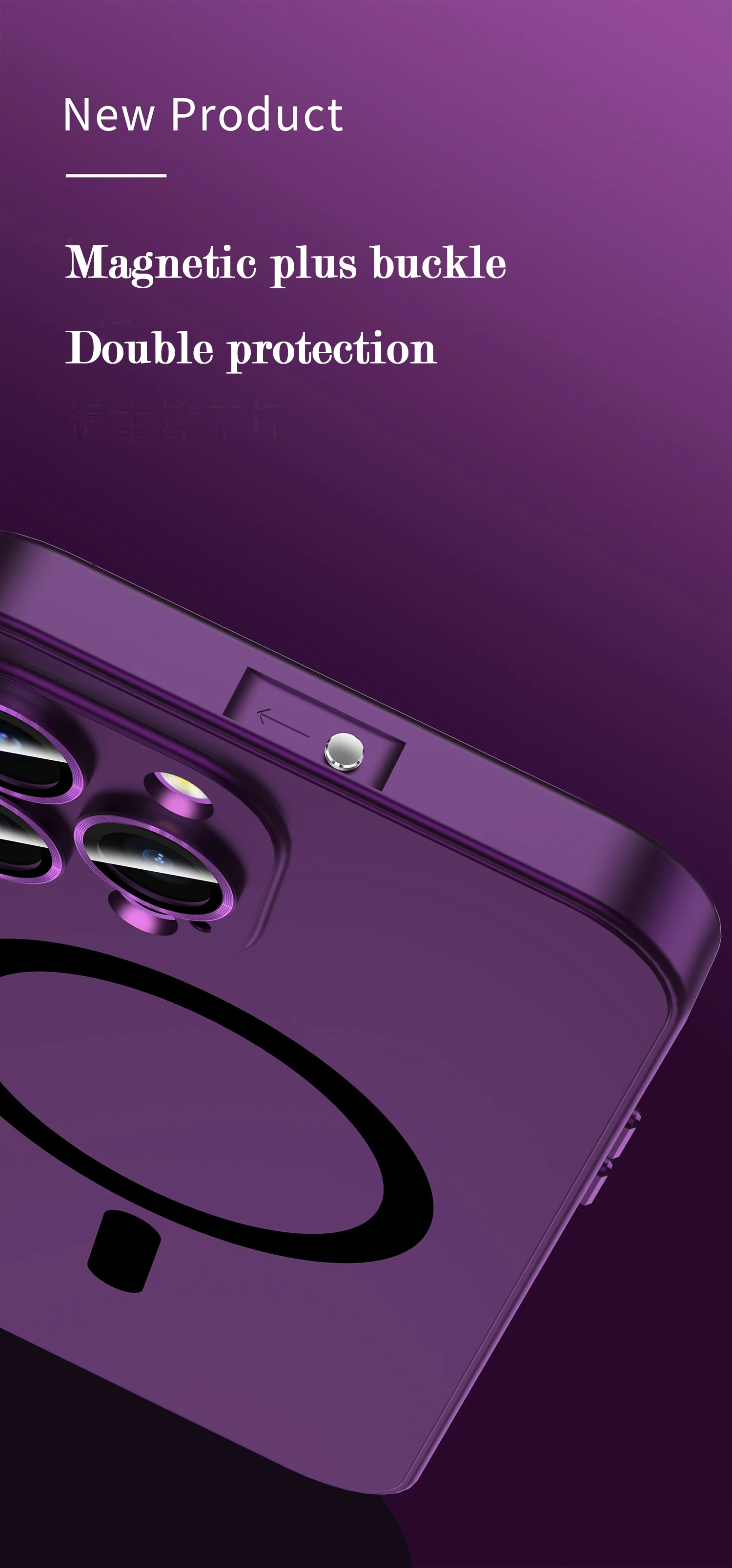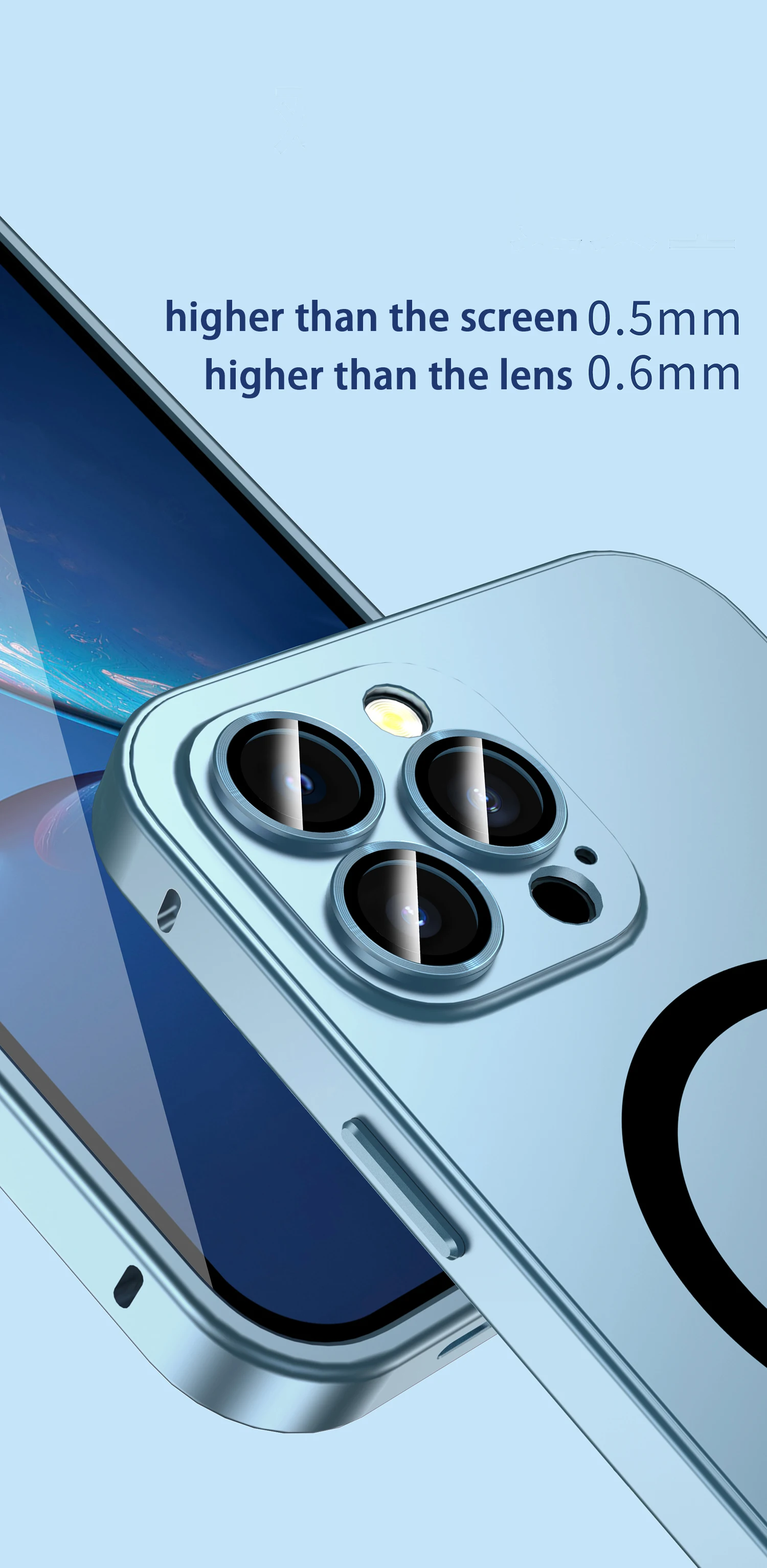 Luxuosa capa de telefone magnética de alumínio para iphone 12 13 14 15 16 pro max plus lente vidro proteção vibração metal capa do telefone