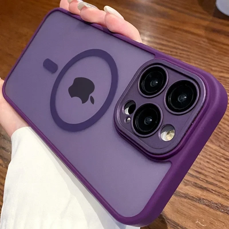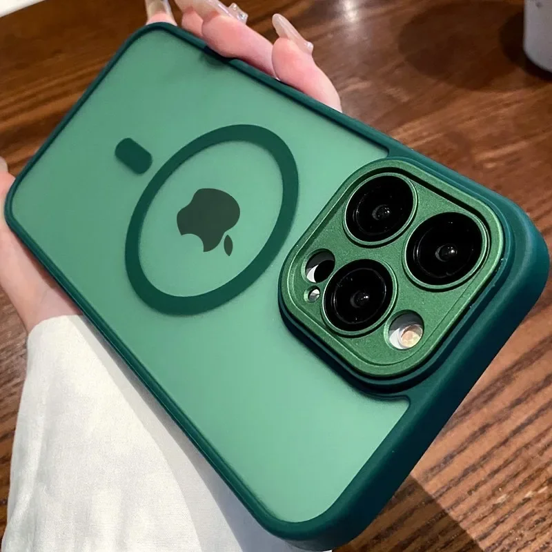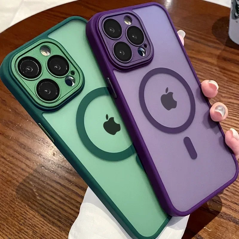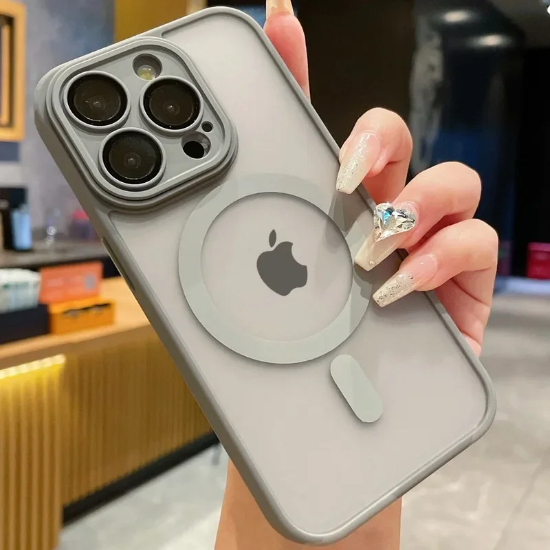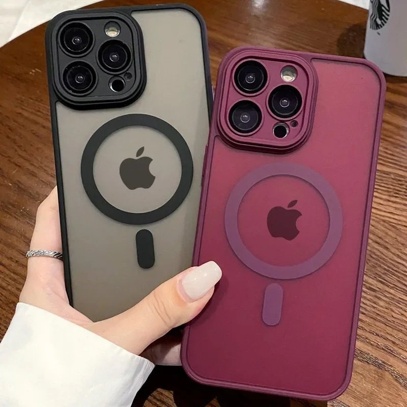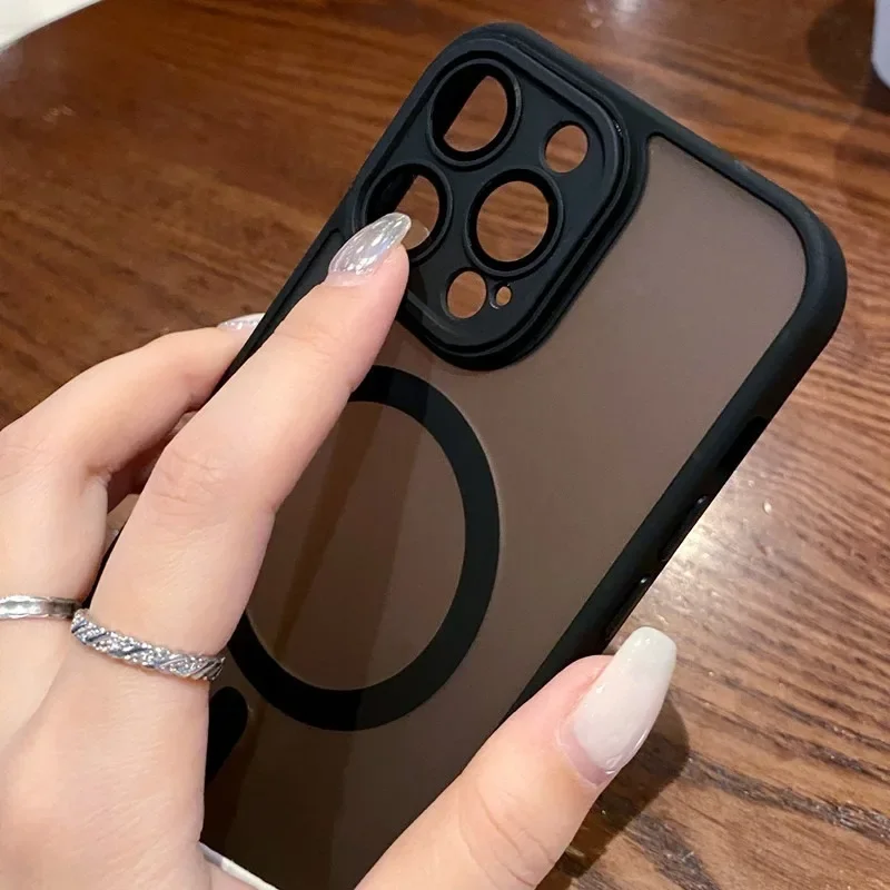 - > Luxuru translúcido magnético fosco caso para iphone 17 ar 16 15 14 13 12 11 pro max para magsafe carga sem fio capa à prova de choque