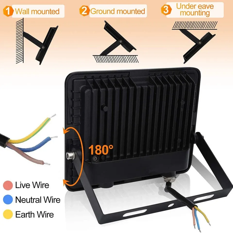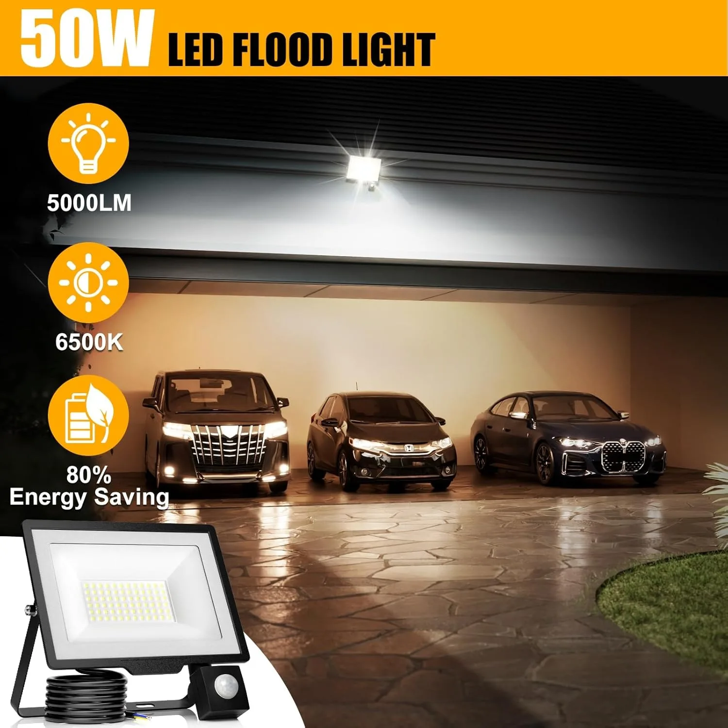 - > Luz de Inundação com Sensor de Movimento LED 10W 20W 30W 50W 100W IP66 à Prova d'Água, Ligação/Desligamento Automático, Economia de Energia para Lâmpada de Segurança de Jardim Externo