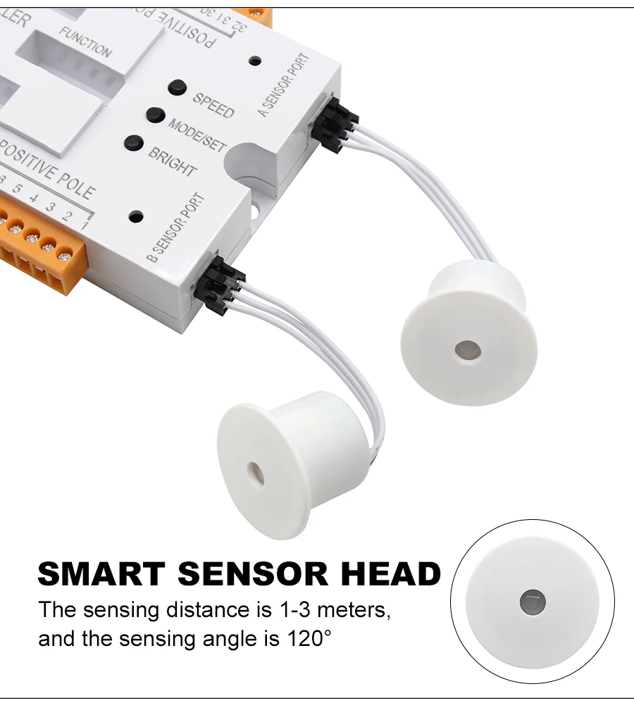 1. Sensores A/B precisam ser instalados na entrada e saída das escadas e de frente para o corpo humano.