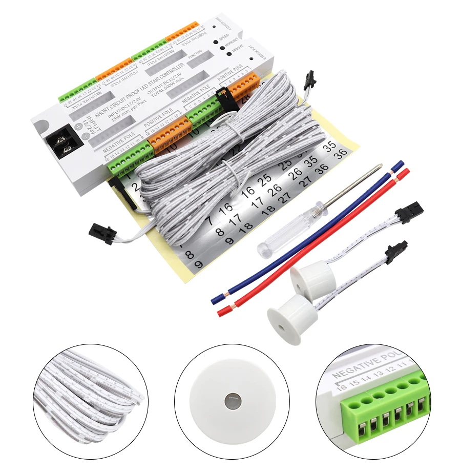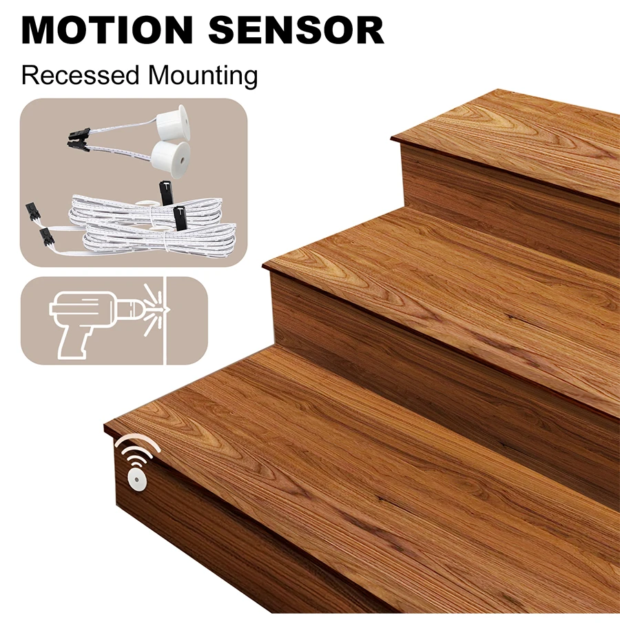 Luz LED para Escadas com Sensor de Movimento PIR, Iluminação LED para Escadas de 1 a 20 Degraus, Luz LED Interna para Escadas, Controlador de Escadas, Kits LED