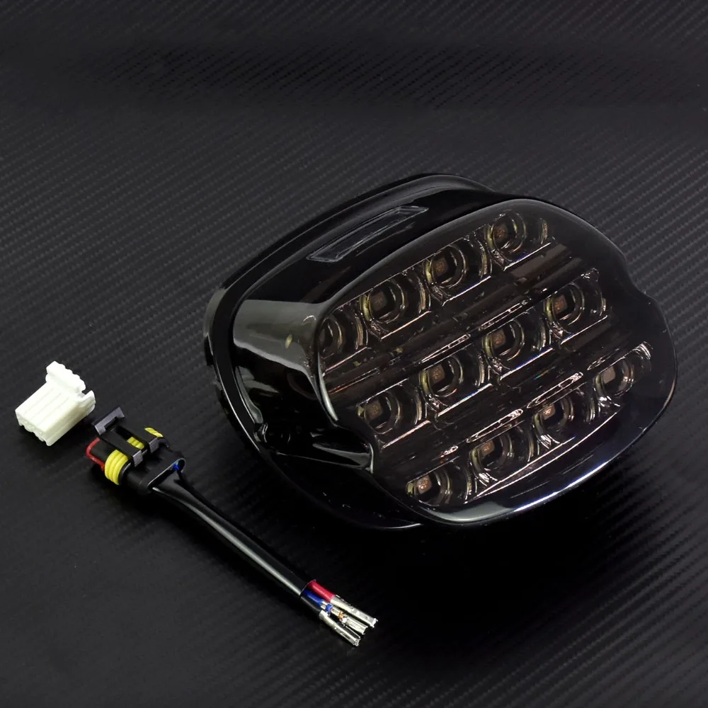 Luz led para motocicleta 12v, lente de fumaça/vermelha, luz traseira de freio, placa de licença, lâmpada traseira para harley dyna touring sportster wide glide