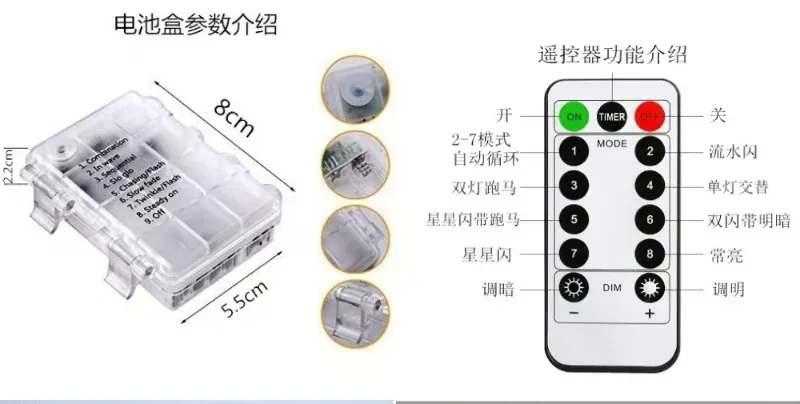 Nota: As baterias não estão incluídas. Prepare as baterias separadamente para esta luz de corda.