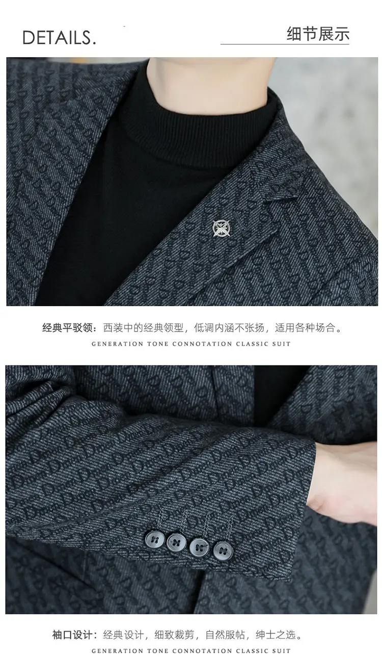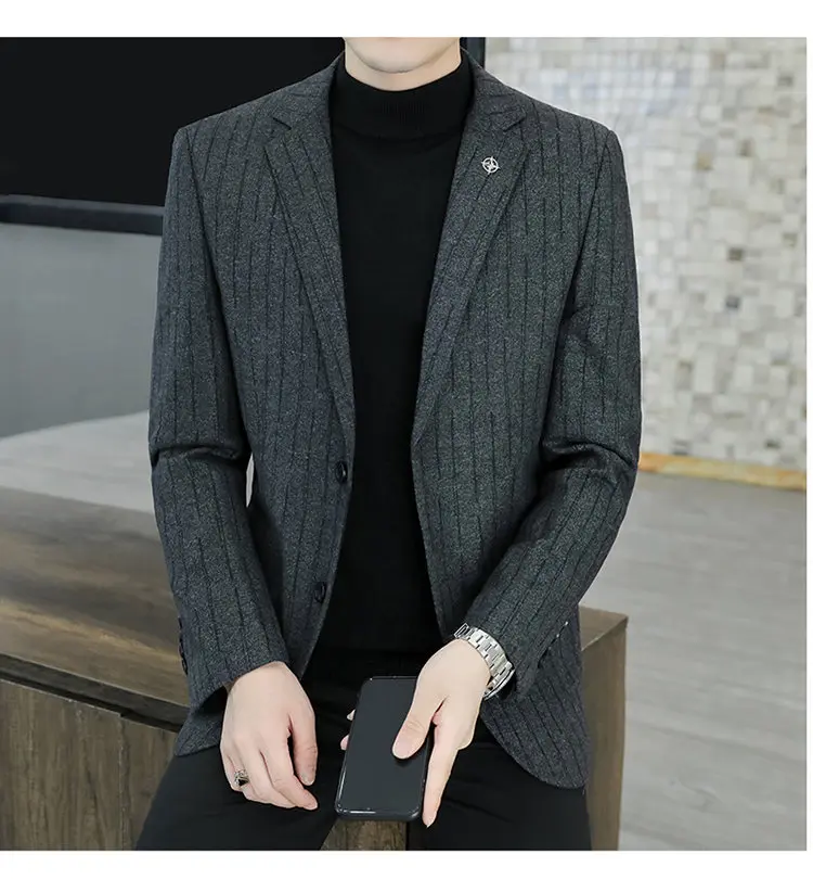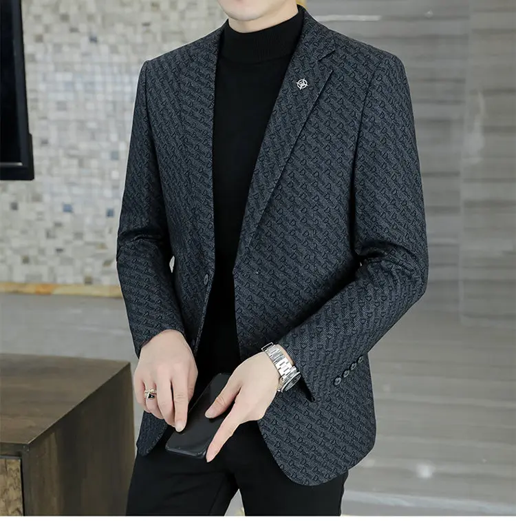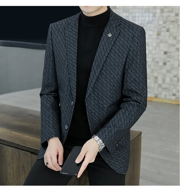 M-8XL blazer masculino de negócios cavalheiro coreano tendência de moda de casamento, ajuste fino, versátil, casual de alta qualidade, blazer de lã de alta qualidade