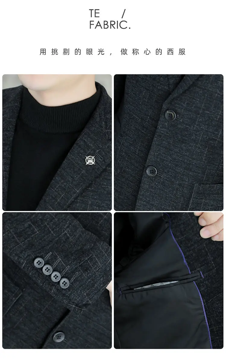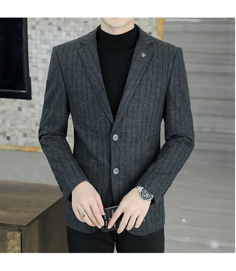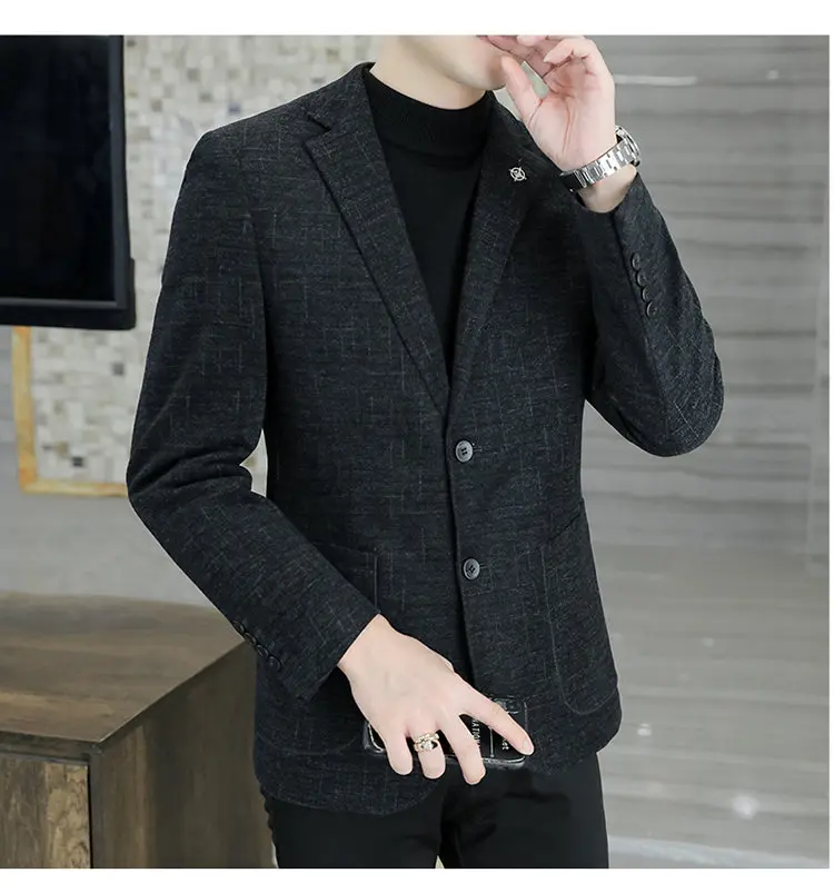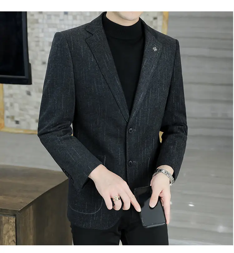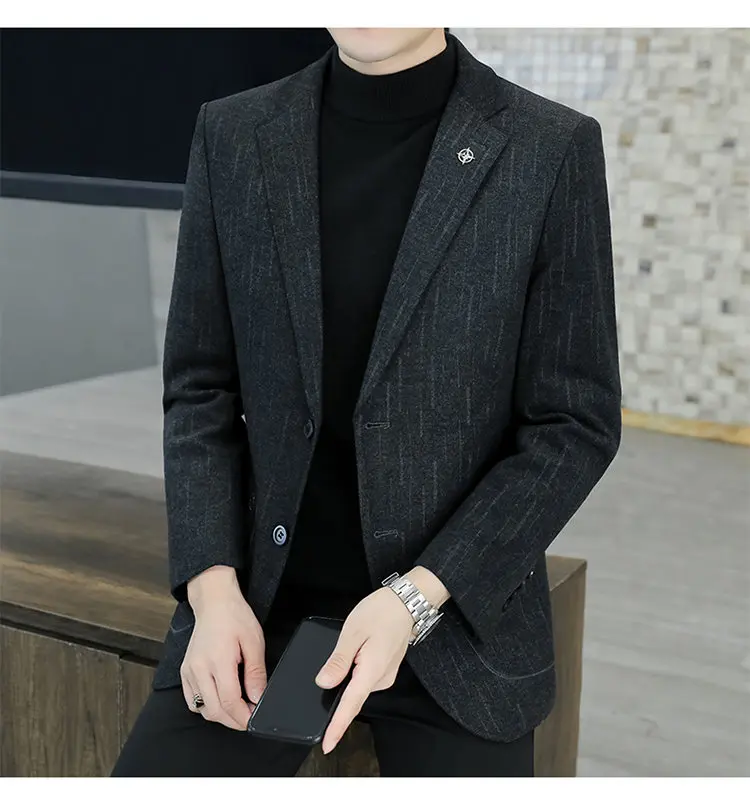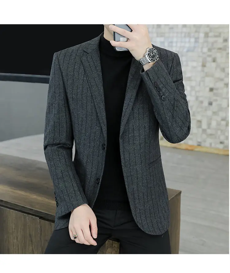 - > M-8XL blazer masculino de negócios cavalheiro coreano tendência de moda de casamento, ajuste fino, versátil, casual de alta qualidade, blazer de lã de alta qualidade