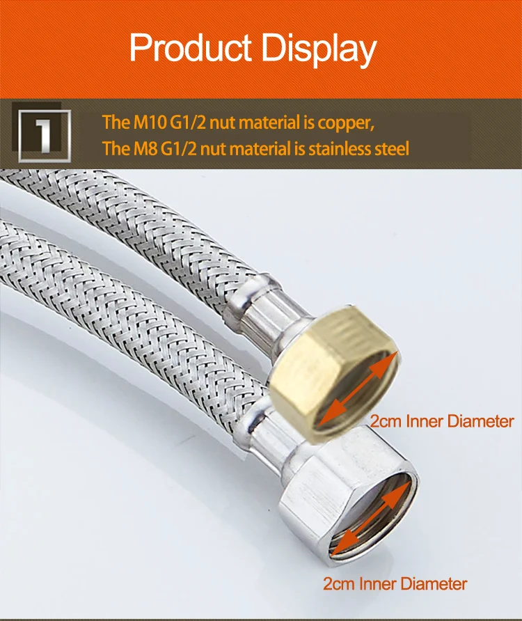 M10/m8 g1/2 torneiras de mangueira trançada de aço inoxidável misturada tubo de entrada de água quente e fria bacia de lavagem tubo de água 80cm1m1.5m2m
