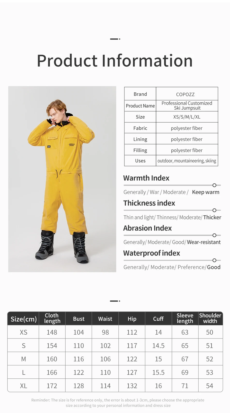 COPOZZ Thick Men Women One-Piece Ski Jumpsuit Outdoor Sports Snowboard Jacket Warm Jump Suit Waterproof Winter Clothes Overalls Hooded