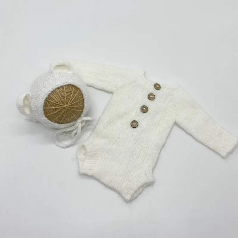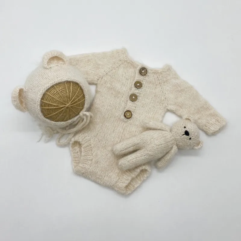 Newborn Photo Romper Bear Bonnet and Toy Set