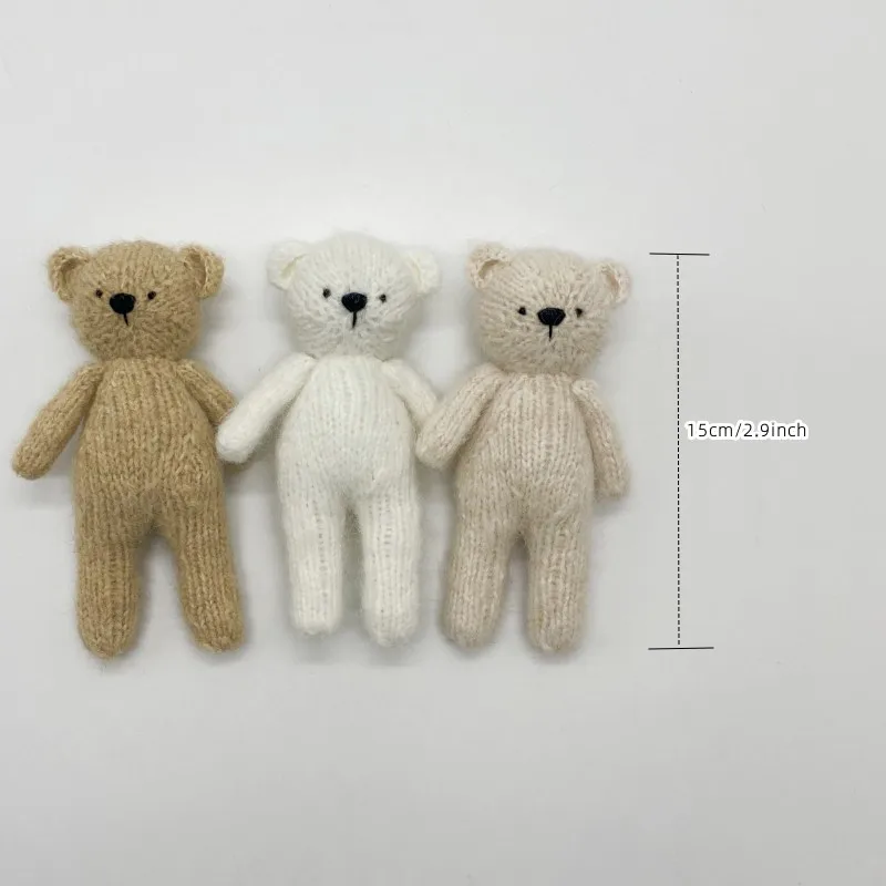 - > Macacão fotográfico para recém-nascidos, gorro de urso e conjunto de brinquedos, fantasia de urso para meninos e meninas com bonecas tricotadas à mão, roupas para fotografia de recém-nascidos