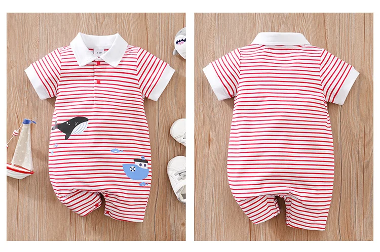 Macacão listrado de manga curta para bebê recém-nascido, casual e confortável, macio, meninos e meninas, 0-18, verão