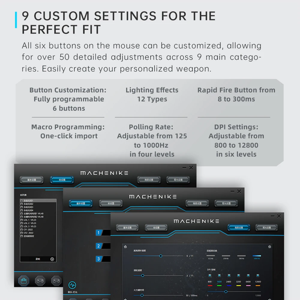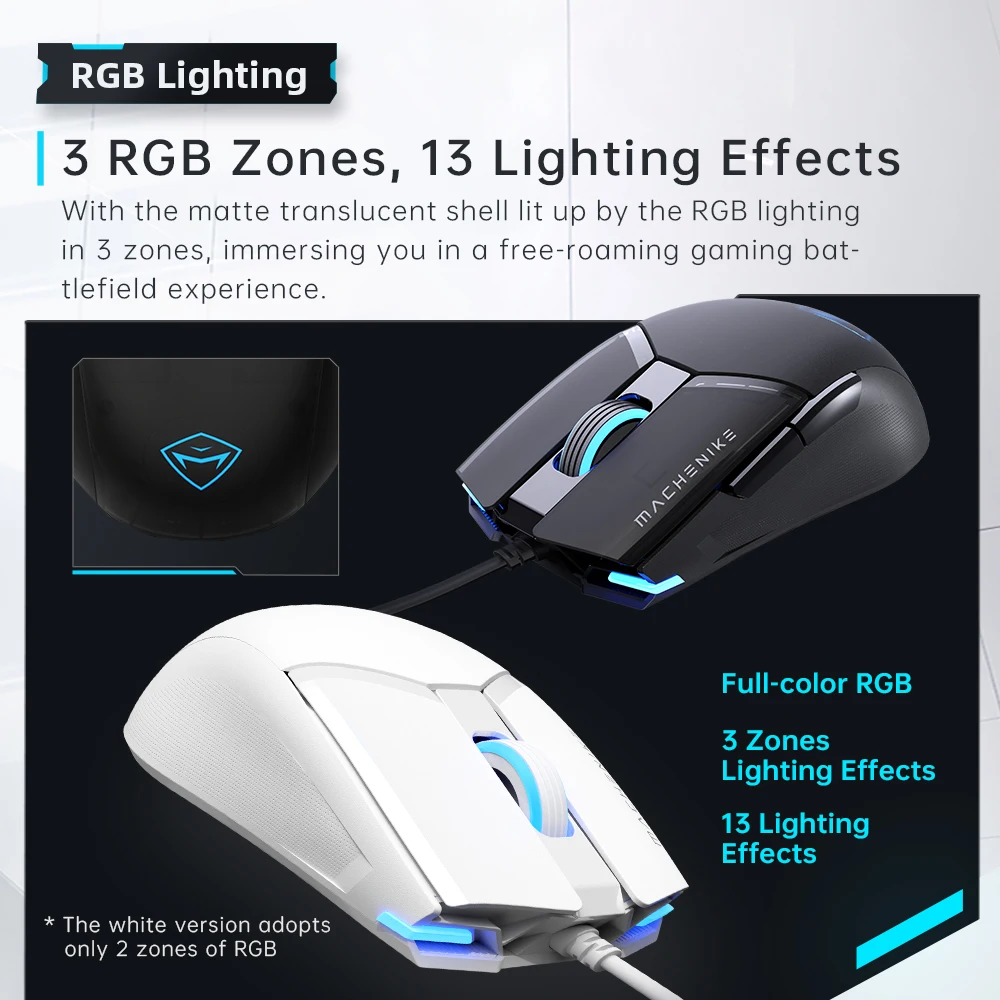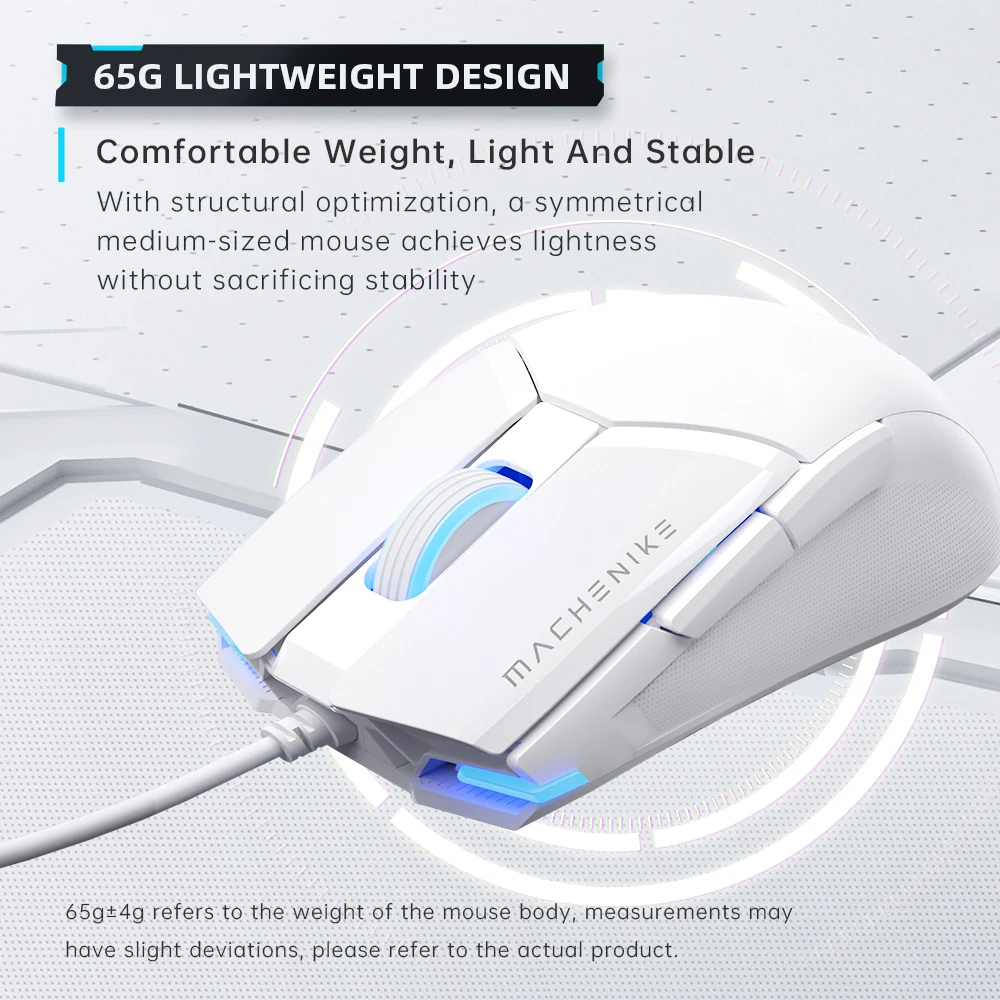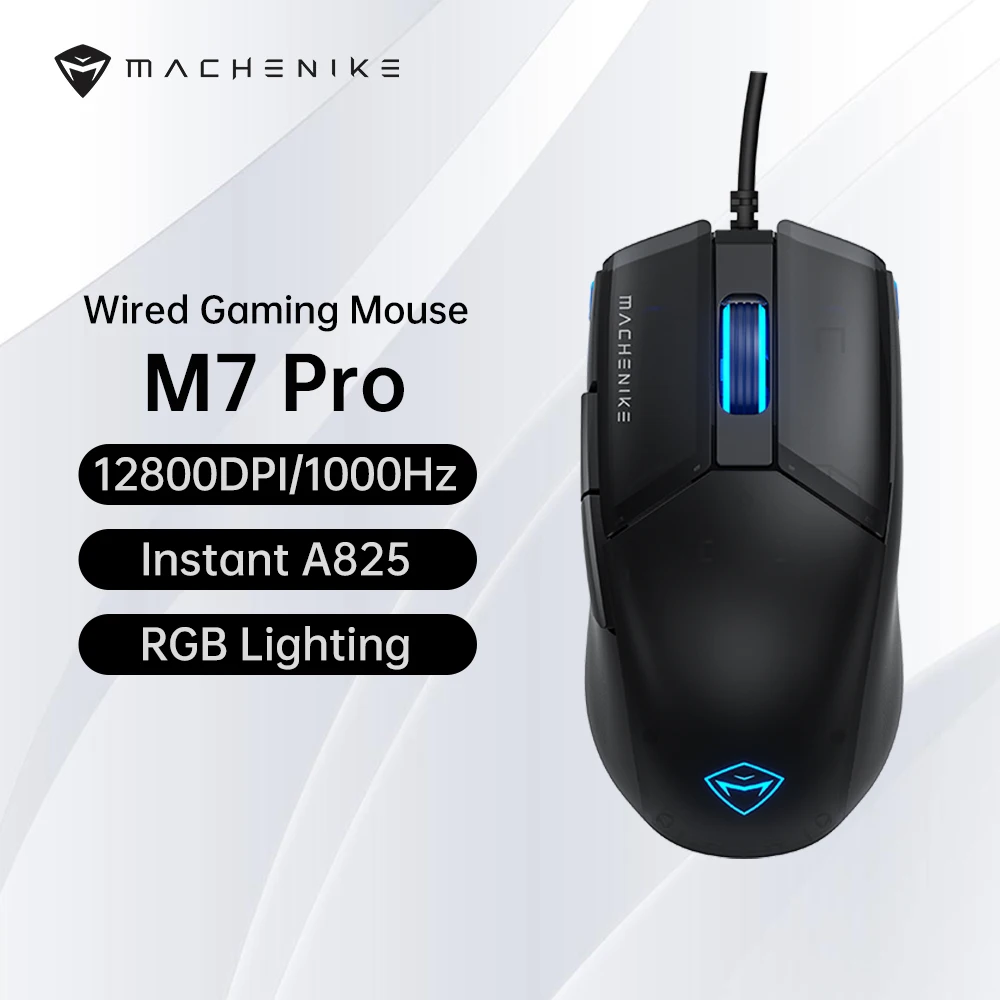 - > Machenike M7Pro Mouse para jogos com fio USB instantâneo A825 12800DPI 1000Hz 7 botões 65g RGB para laptop PC mouse gamer