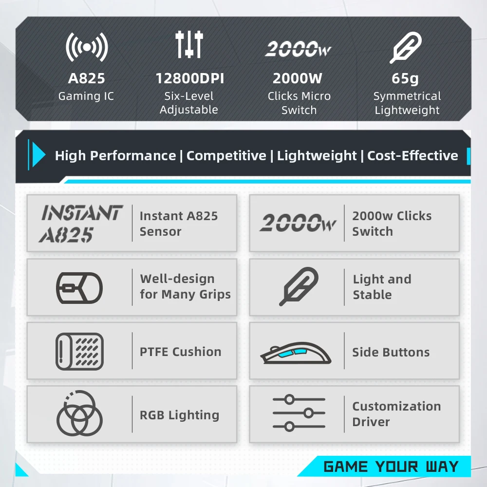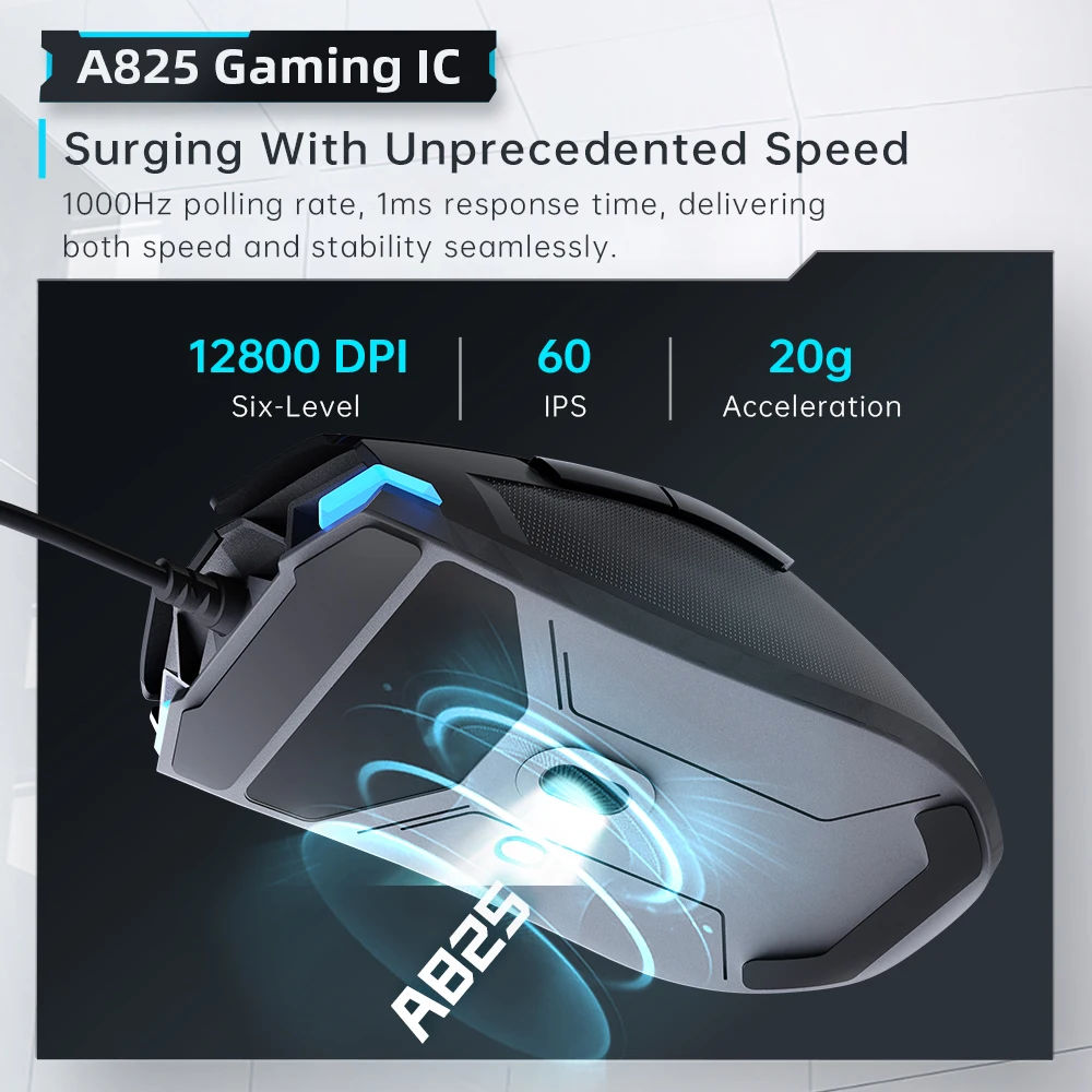 Modelo de sensor: Instantâneo A825 (12800 DPI | 60 pontos por segundo | 20g)