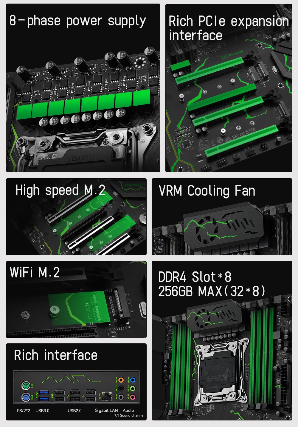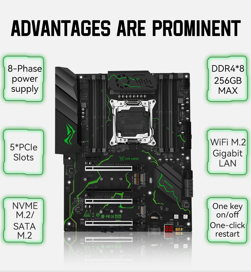 - > MACHINIST X99 MR9S kit placa-mãe LGA2011-3 Xeon E5 2680 V4 cpu 32GB DDR4 Quatro canais TPM 2.0 Interface NVME M.2 USB3.0