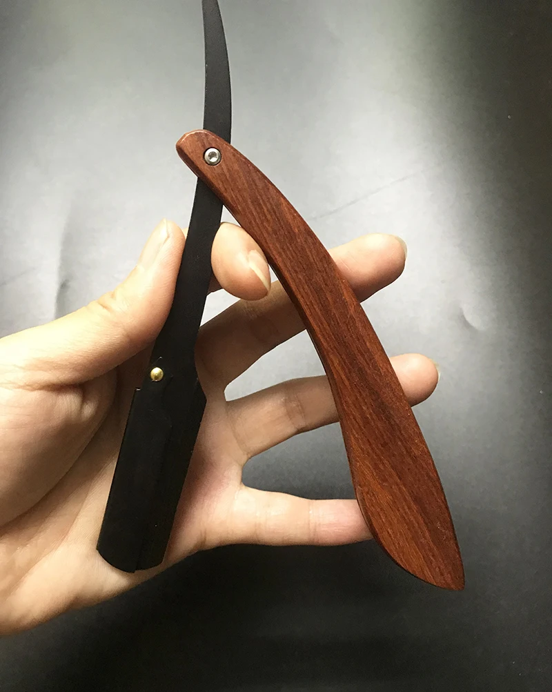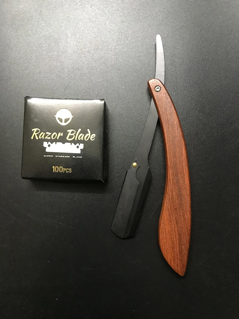 Madeira homens barbear barbeiro ferramentas navalha de cabelo faca de barbear dobrável suporte de navalha reta de aço inoxidável