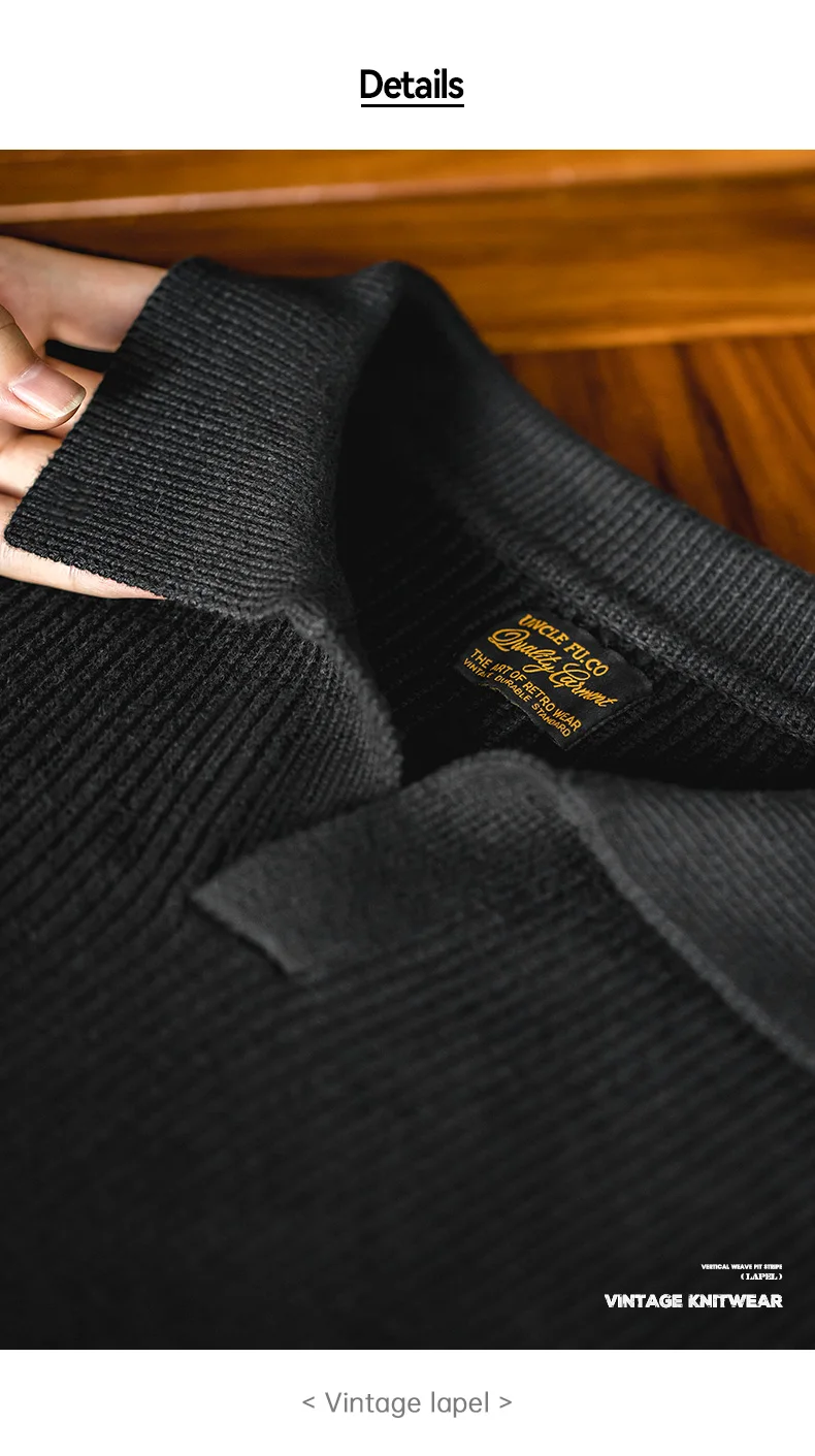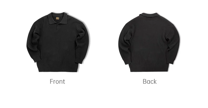 Maden retro polo pescoço malha vertical tecido camisa polo preguiçoso pulôver camisola masculina outono e inverno lapela macio quente