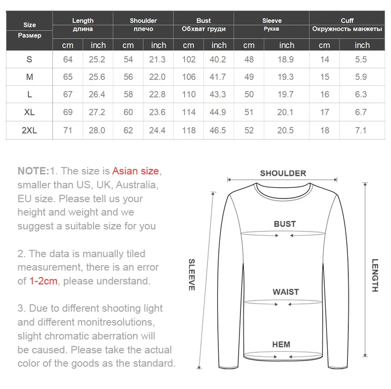 Siga rigorosamente a tabela de tamanhos para selecionar o tamanho.Não selecione diretamente de acordo com seus hábitos.Este é o tamanho da Ásia, menor que o tamanho da UE/EUA.O tamanho pode ter uma diferença de 1-2cm devido à medição manual.