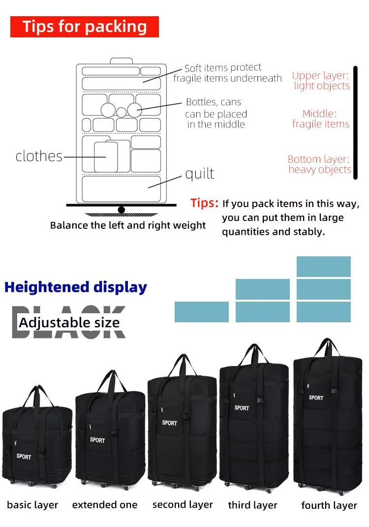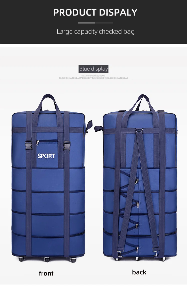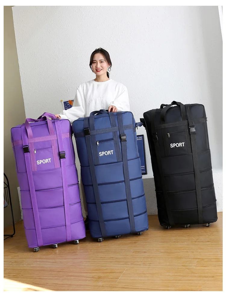 - > Mais companhia aérea verificado saco oxford grande capacidade de viagem roda universal dobrável bagagem em movimento saco armazenamento rolamento cubos embalagem