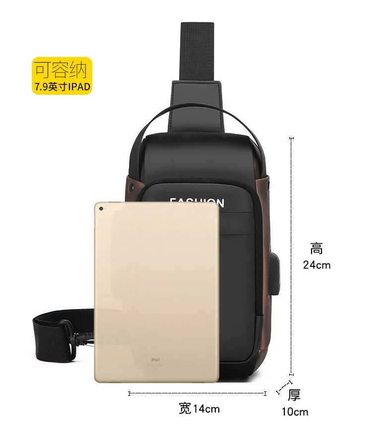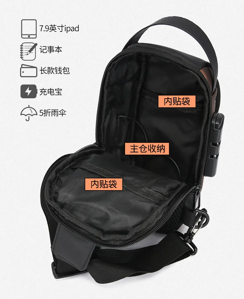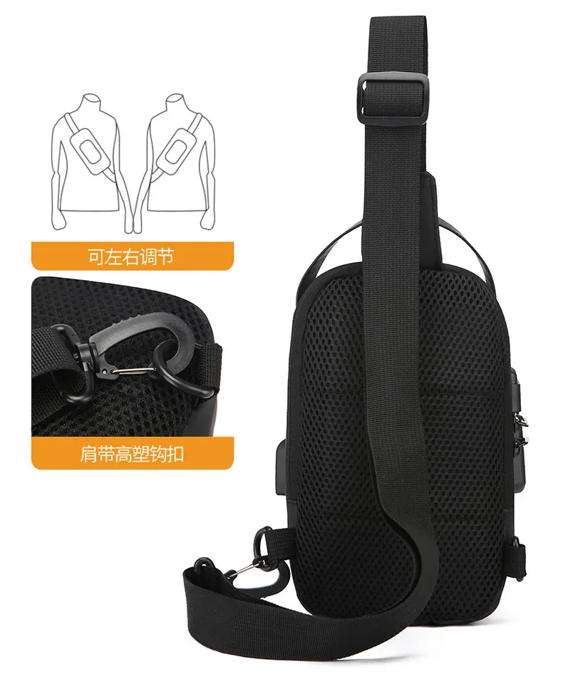 - > Mais novo masculino anti roubo saco de peito ombro carregamento usb crossbody pacote escola curta viagem mensageiros ginásio masculino sling esportes pacote