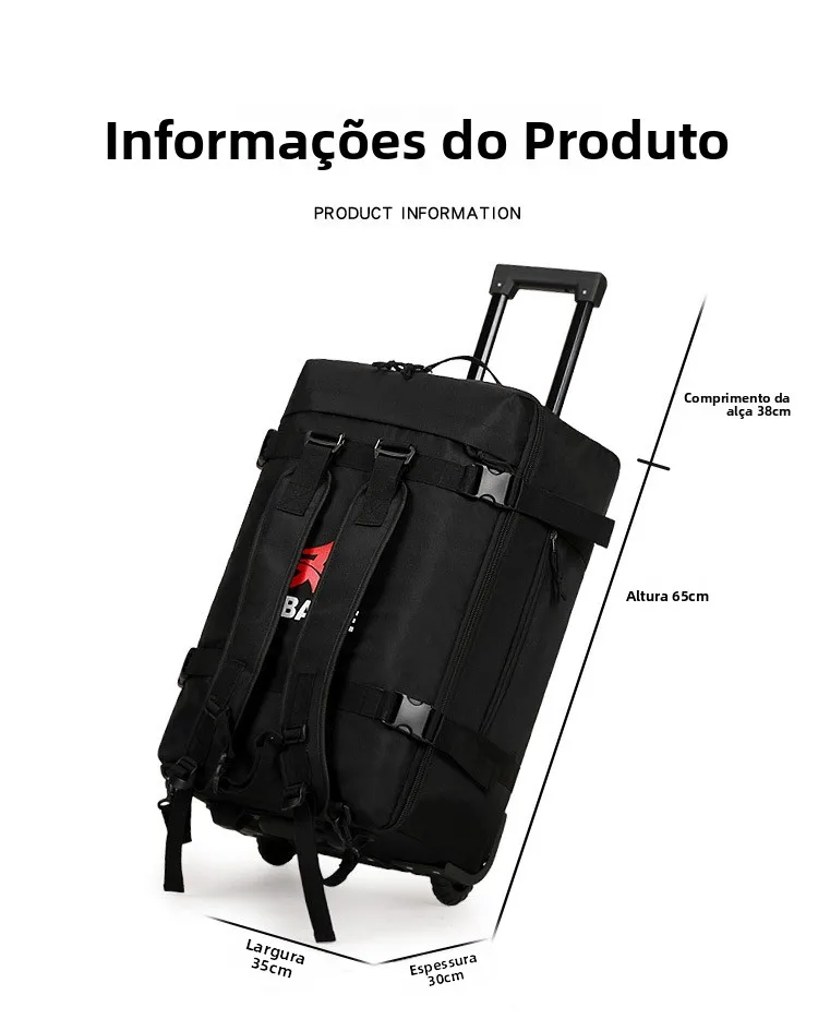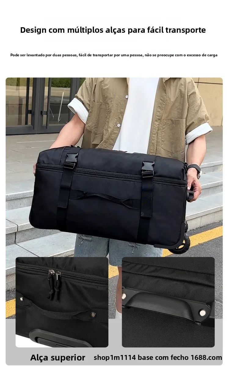 Mala de Viagem Ultra-Leve com Alça Dupla e Rodas Grandes para Transporte de Carga Aérea