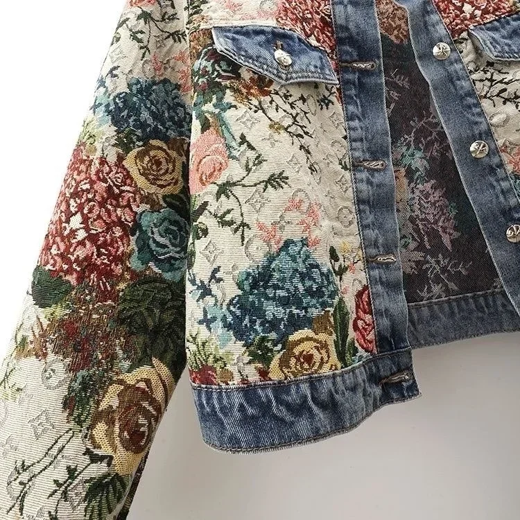 - > Manga longa em torno do pescoço denim jaqueta curta retro bordado versátil feminino topo tamanho pequeno primavera nova chegada jaqueta de algodão