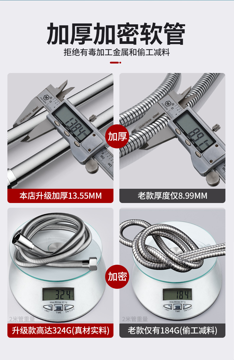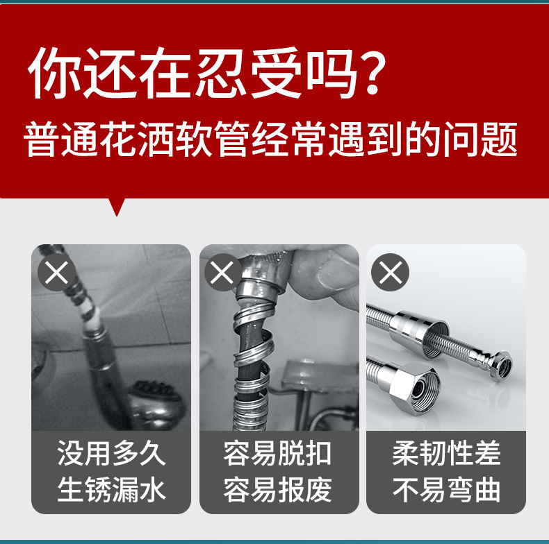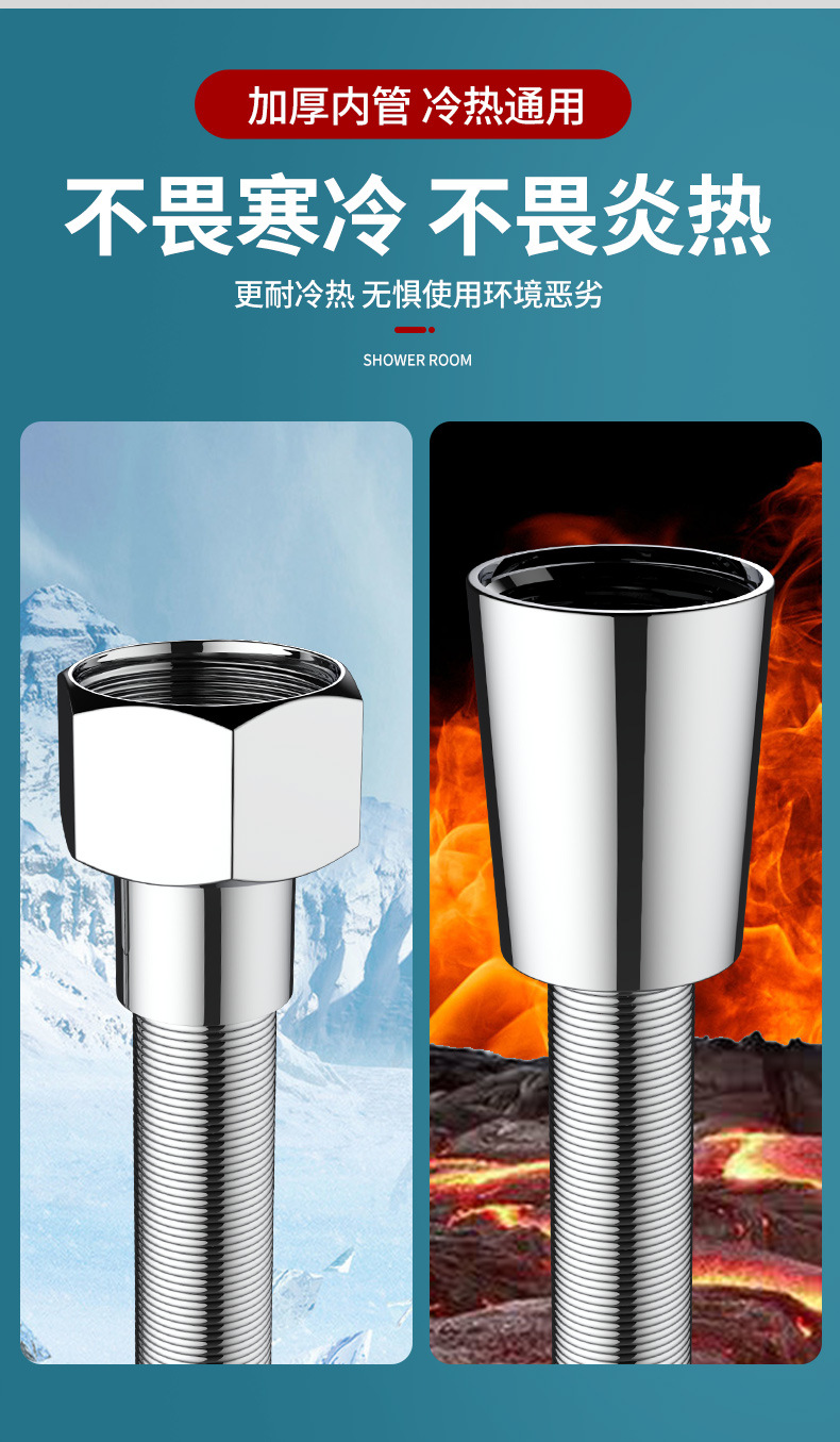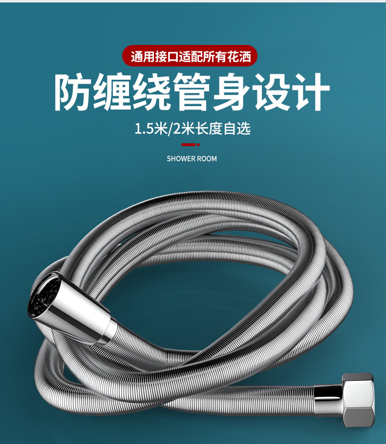 Mangueira de chuveiro flexível com criptografia de aço inoxidável, 1.5/2m, extensão de mangueira de água longa, tubo de encanamento, acessórios de banheiro