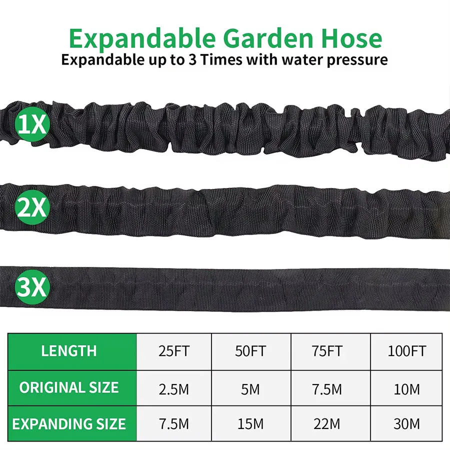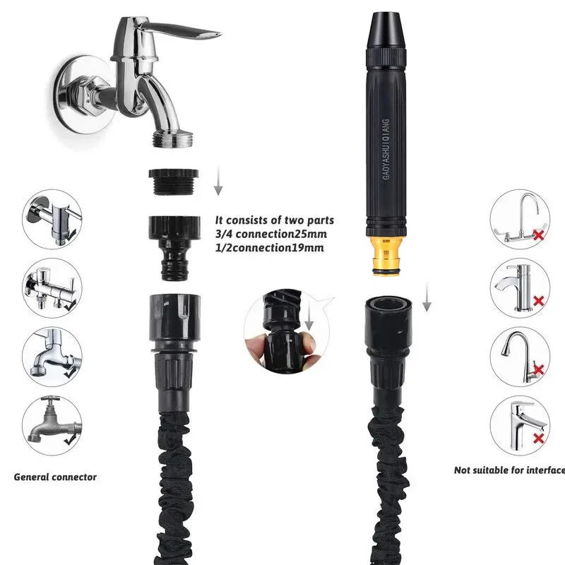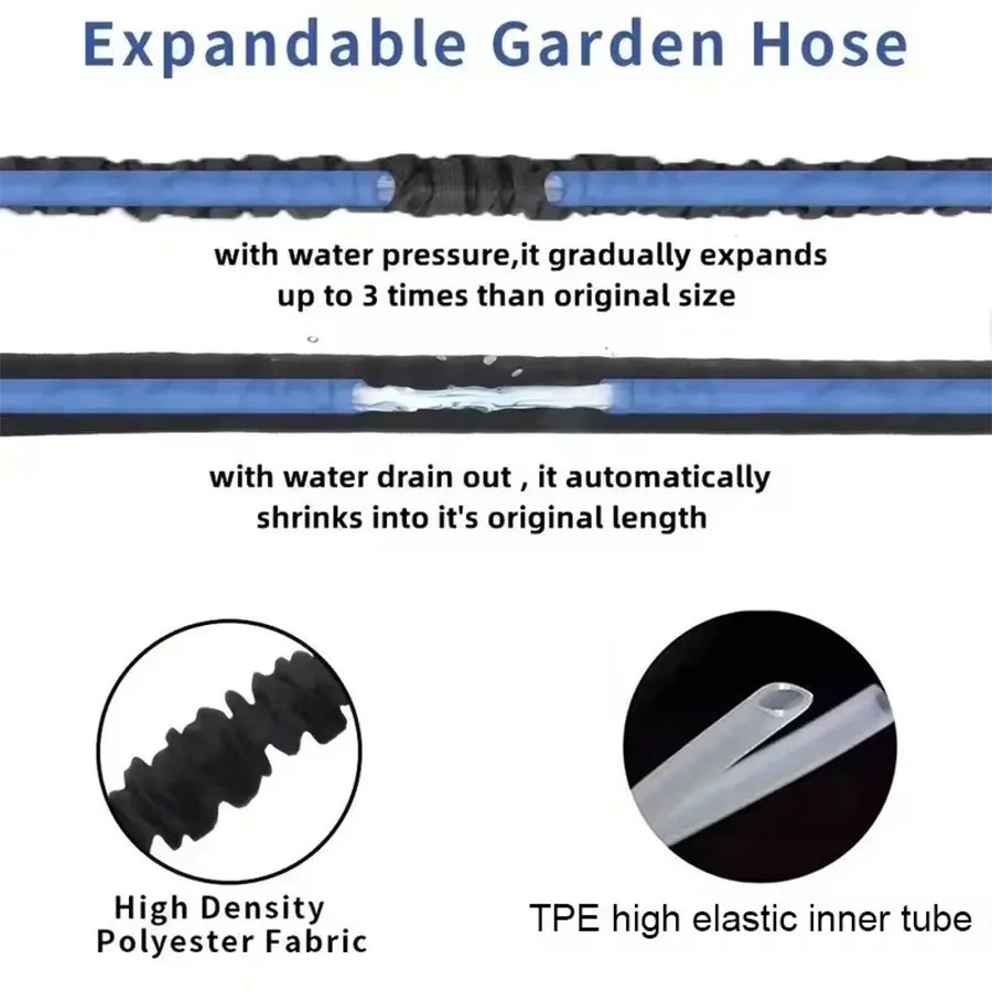 Mangueira mágica expansível de 25 pés-200 pés, tubos de água para irrigação de jardim doméstico, alta pressão, lavagem de carro, limpeza, pistola de água, suprimentos de jardinagem
