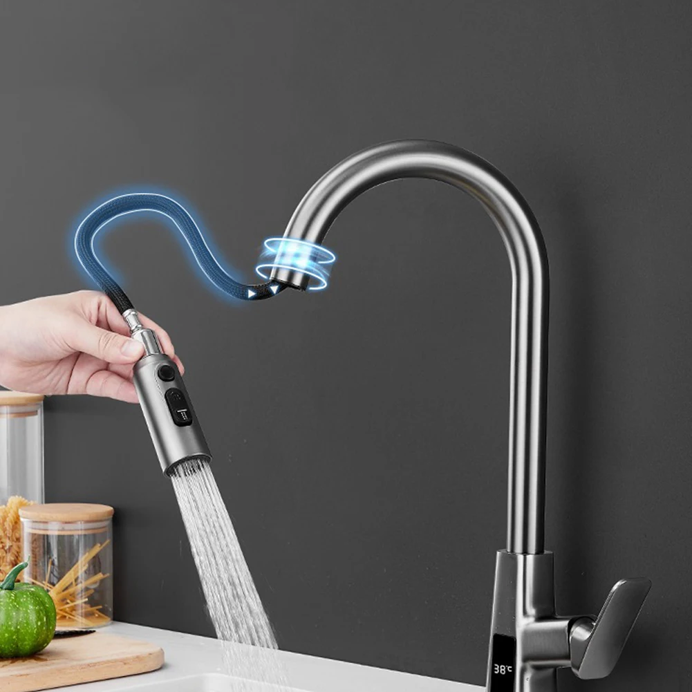 Mangueira para torneira de cozinha de 1,5 m 360 ° Rotação pull out substituição torneira mangueira para mangueira de chuveiro trançada acessórios cozinha