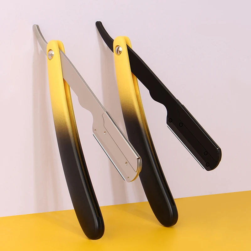 Manual sobrancelha barbear navalha dobrável em linha reta barba aparar navalha se encaixa único borda lâmina barbeiro ferramentas de barbear cabelo para mulher