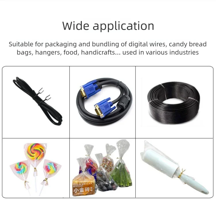 Adequado para fios eletrônicos, sacos de doces e pão, cabides, alimentos, artesanato... Usado para embalagens e cintas em diversos setores